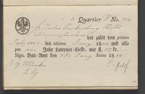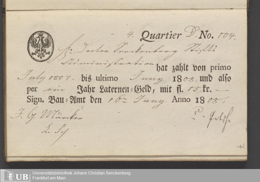 B 5 Dr. Senckenbergische Stiftung, 70 - Quittungsbuch der Senckenbergischen Administration über Laternengeld