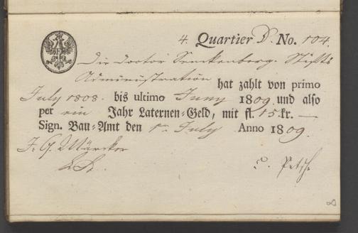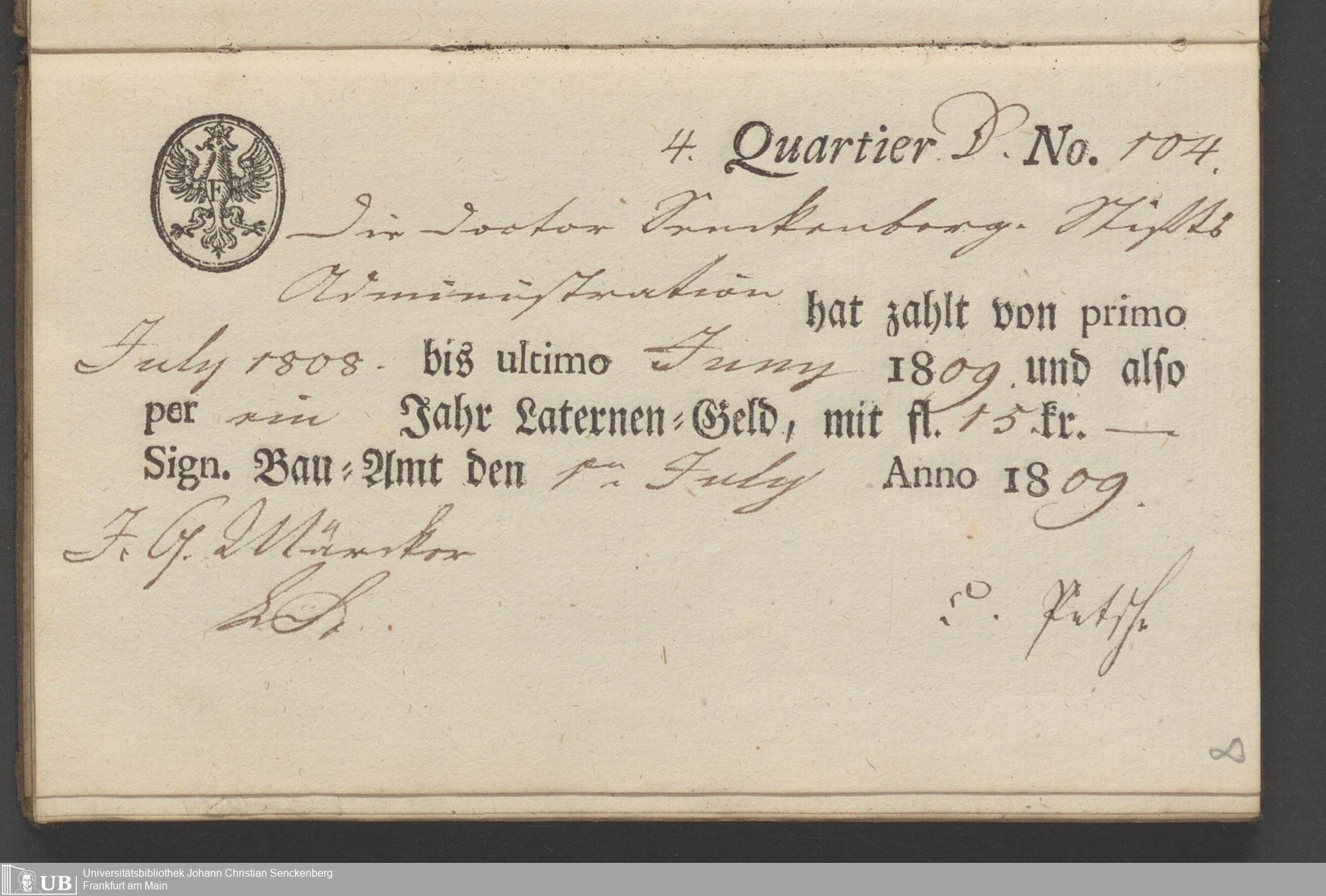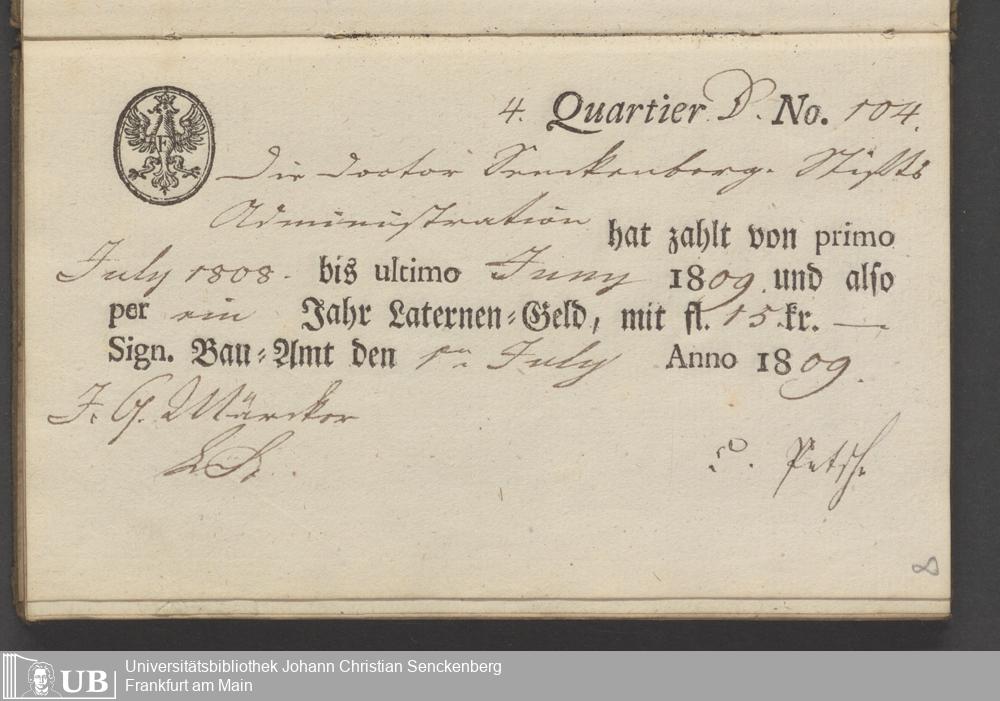 B 5 Dr. Senckenbergische Stiftung, 70 - Quittungsbuch der Senckenbergischen Administration über Laternengeld