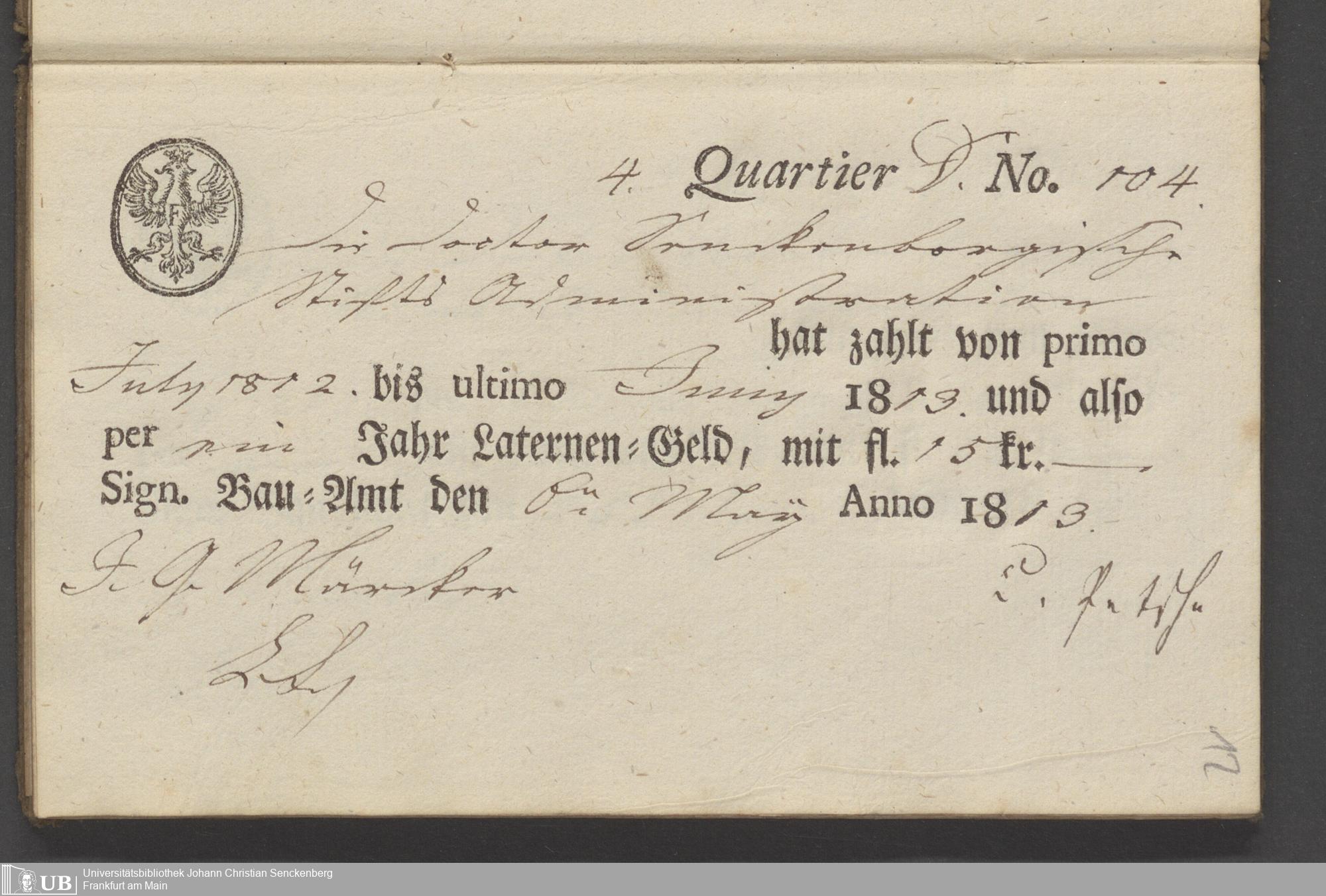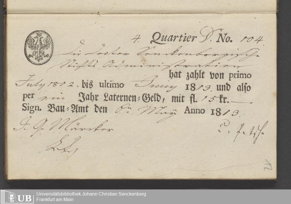 B 5 Dr. Senckenbergische Stiftung, 70 - Quittungsbuch der Senckenbergischen Administration über Laternengeld