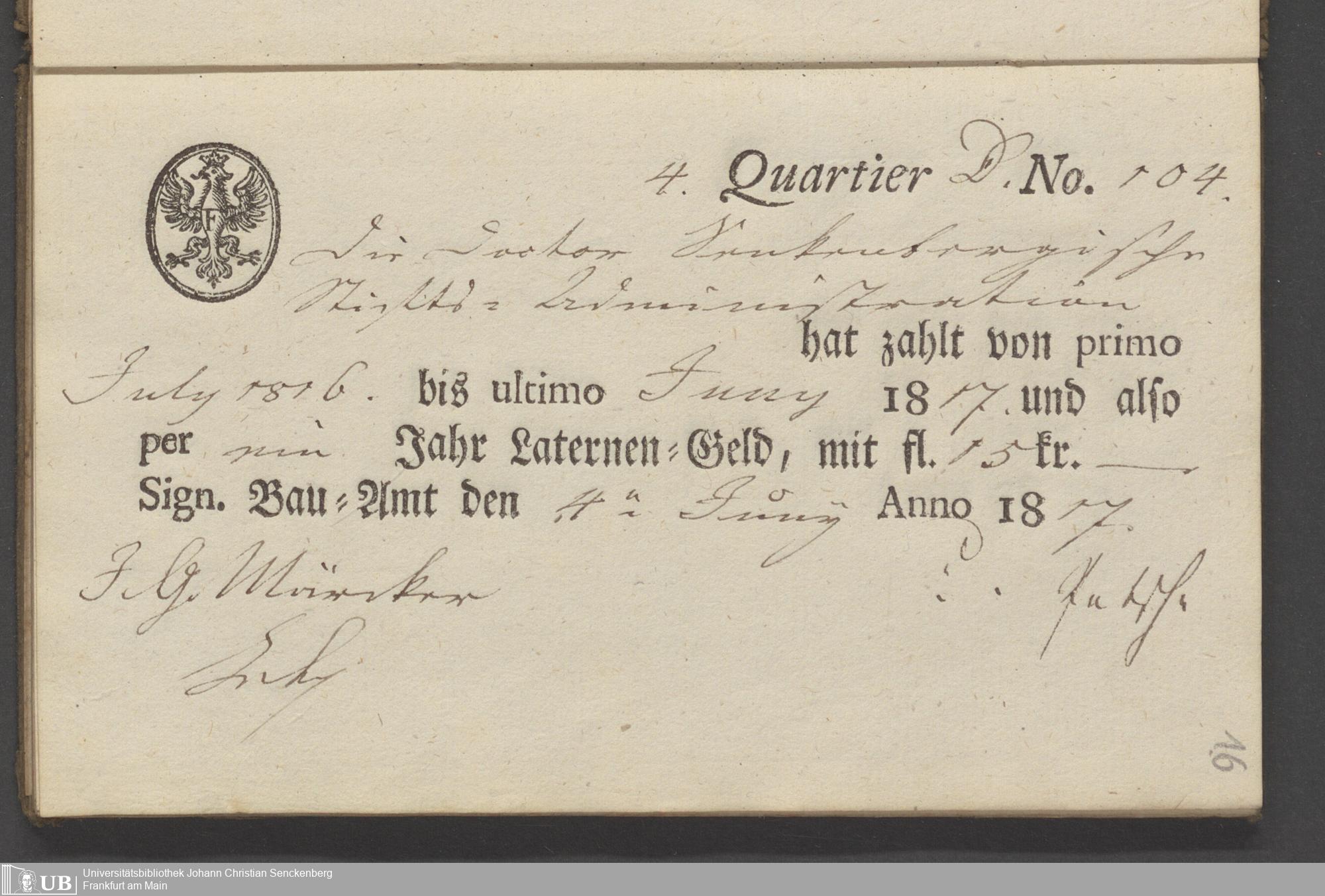 B 5 Dr. Senckenbergische Stiftung, 70 - Quittungsbuch der Senckenbergischen Administration über Laternengeld