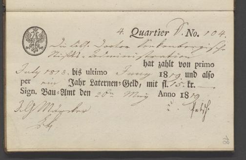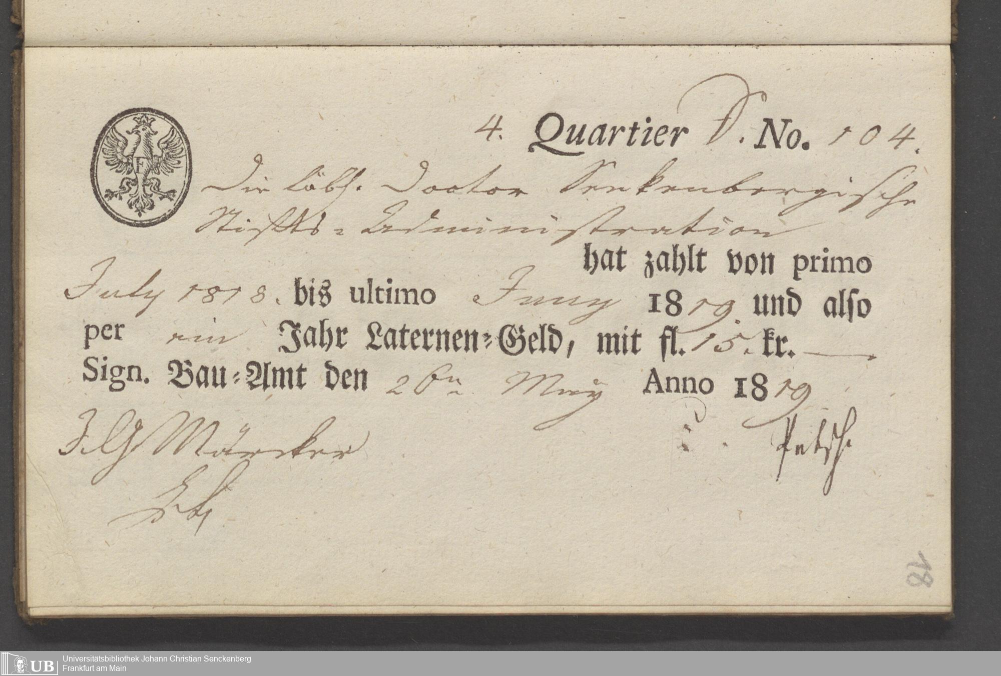 B 5 Dr. Senckenbergische Stiftung, 70 - Quittungsbuch der Senckenbergischen Administration über Laternengeld