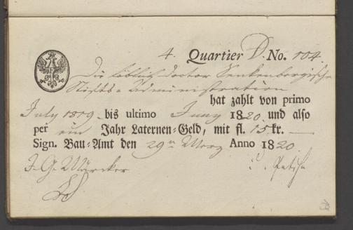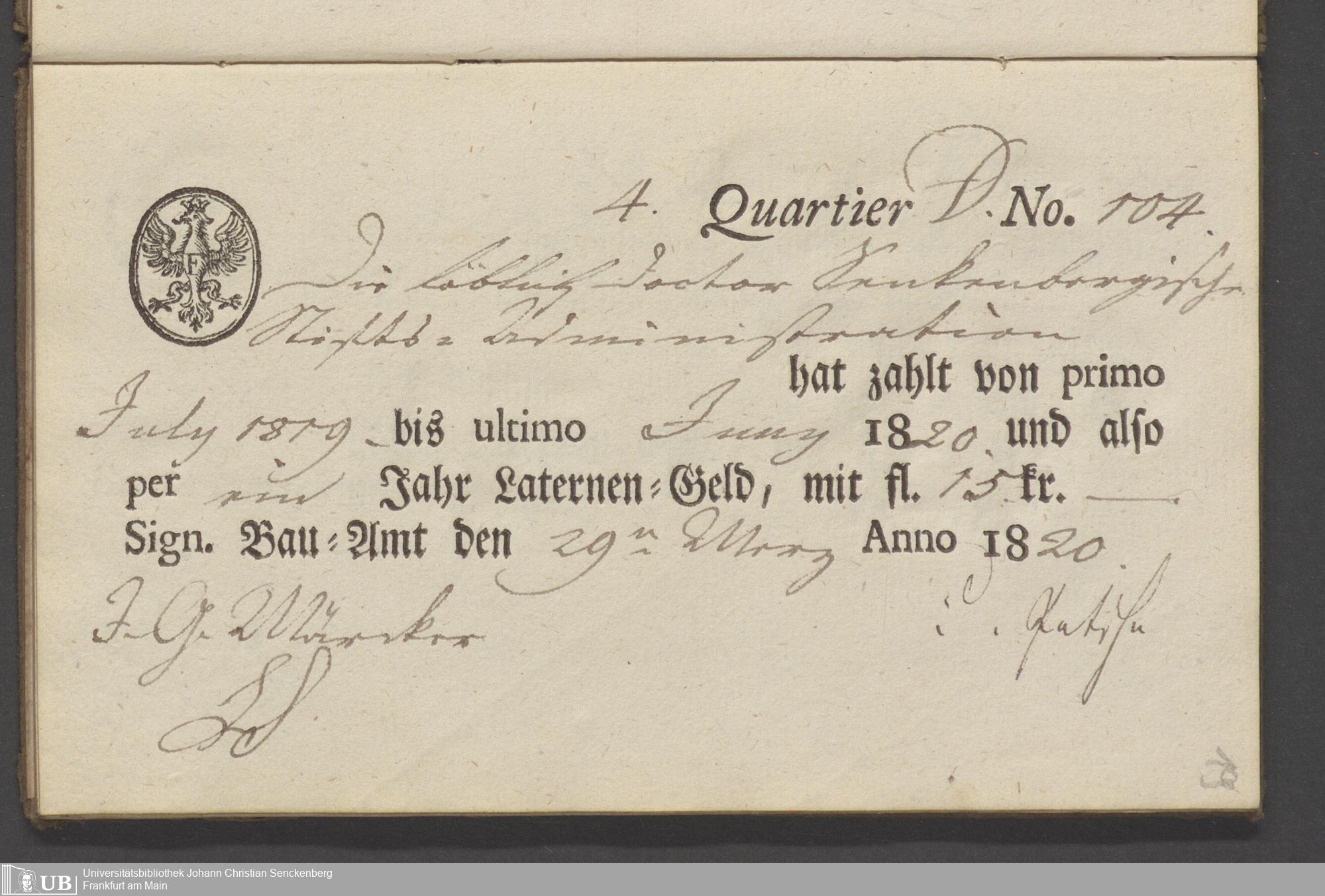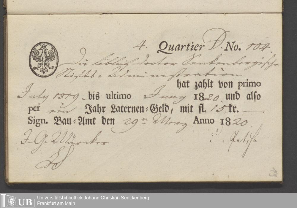 B 5 Dr. Senckenbergische Stiftung, 70 - Quittungsbuch der Senckenbergischen Administration über Laternengeld