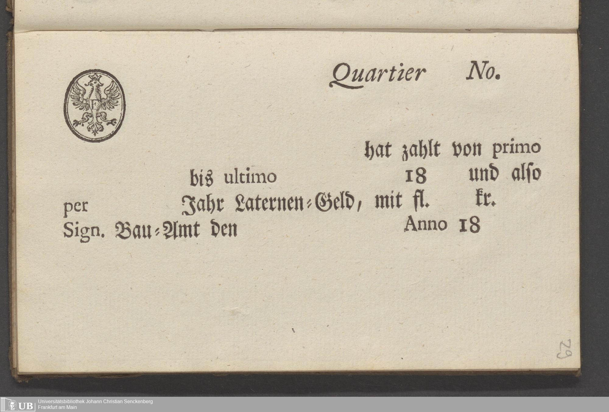B 5 Dr. Senckenbergische Stiftung, 70 - Quittungsbuch der Senckenbergischen Administration über Laternengeld