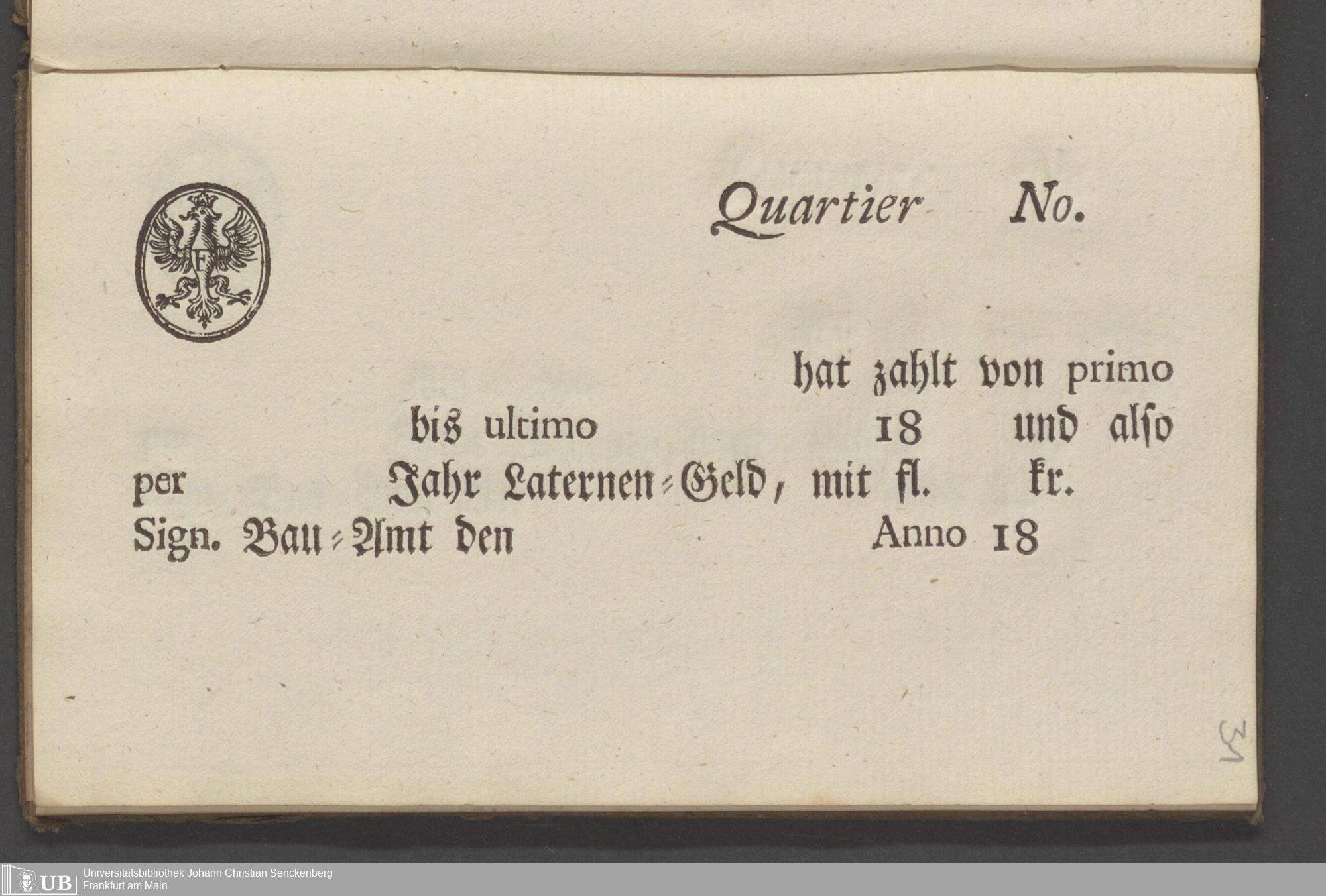 B 5 Dr. Senckenbergische Stiftung, 70 - Quittungsbuch der Senckenbergischen Administration über Laternengeld
