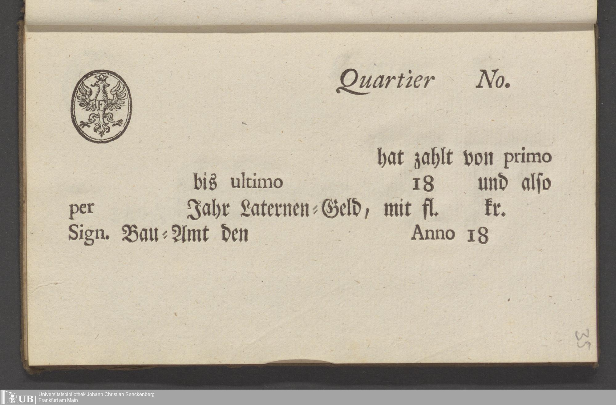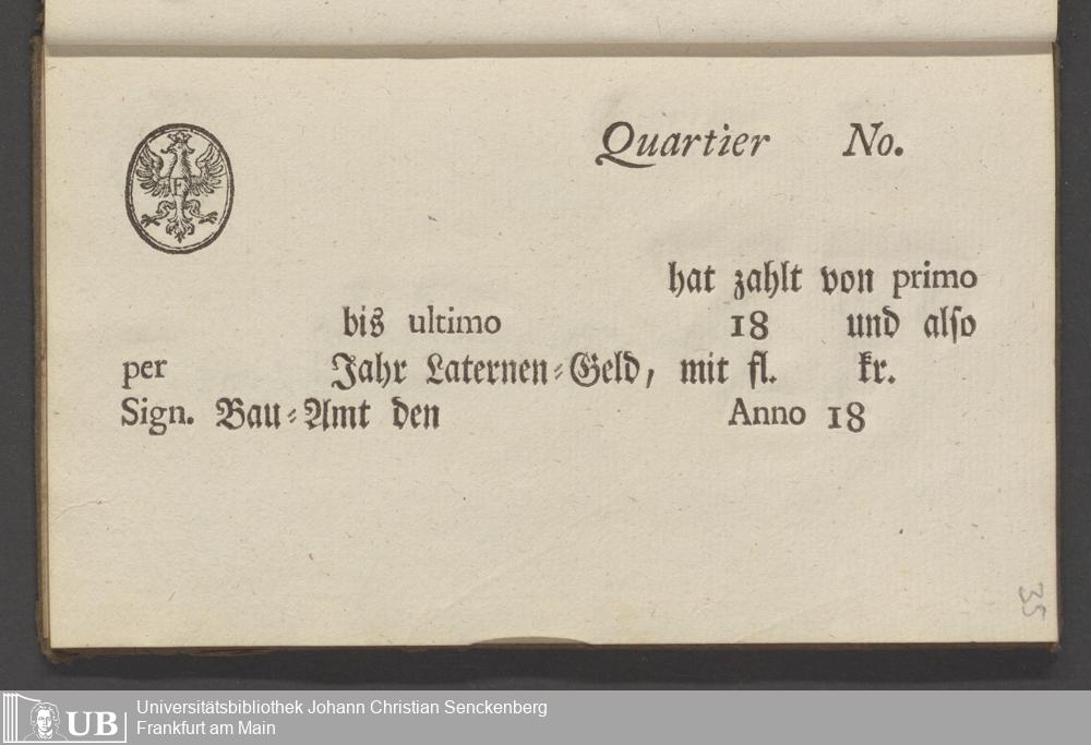 B 5 Dr. Senckenbergische Stiftung, 70 - Quittungsbuch der Senckenbergischen Administration über Laternengeld