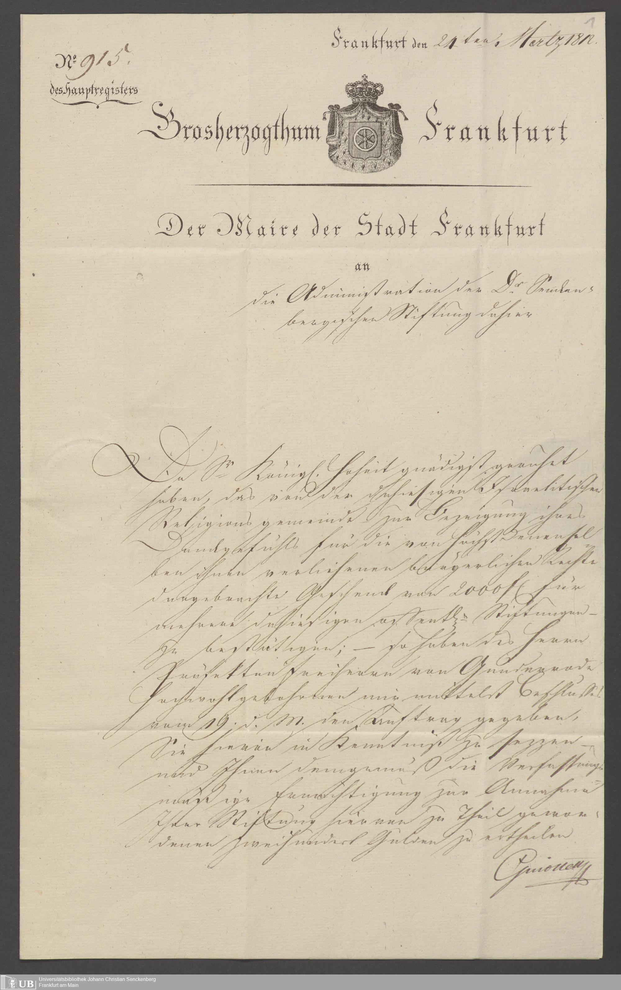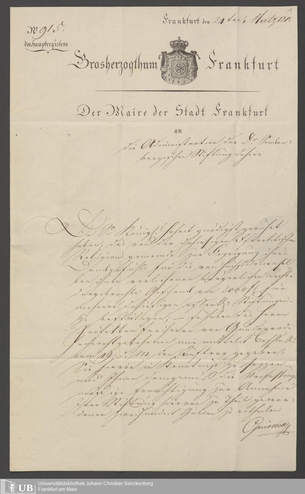 B 5 Dr. Senckenbergische Stiftung, 71 - Schenkung der Judenschaft wegen erlangten Bürgerrechts
