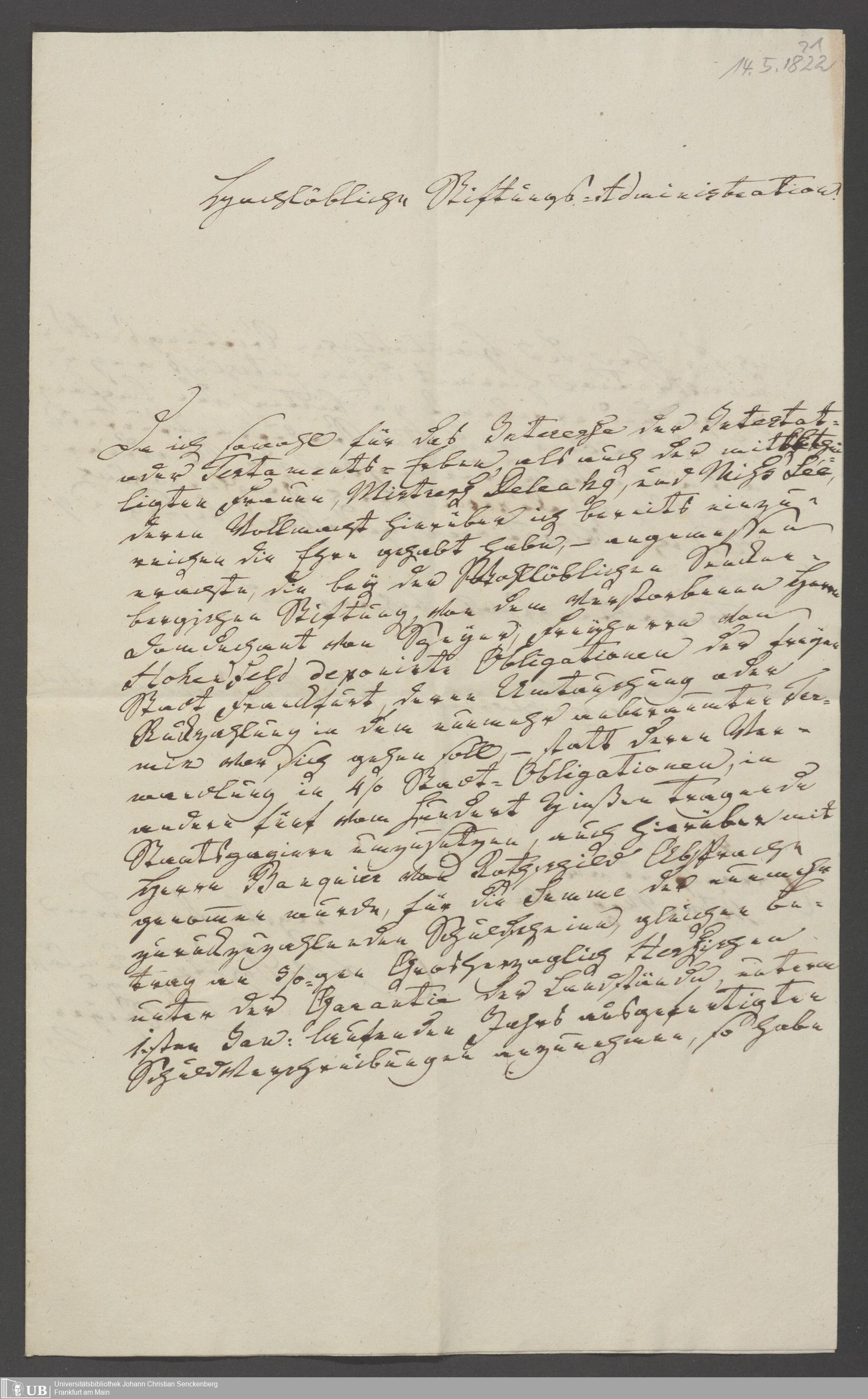B 5 Dr. Senckenbergische Stiftung, 73 - Vermögensverwaltung durch die Senckenbergische Administration