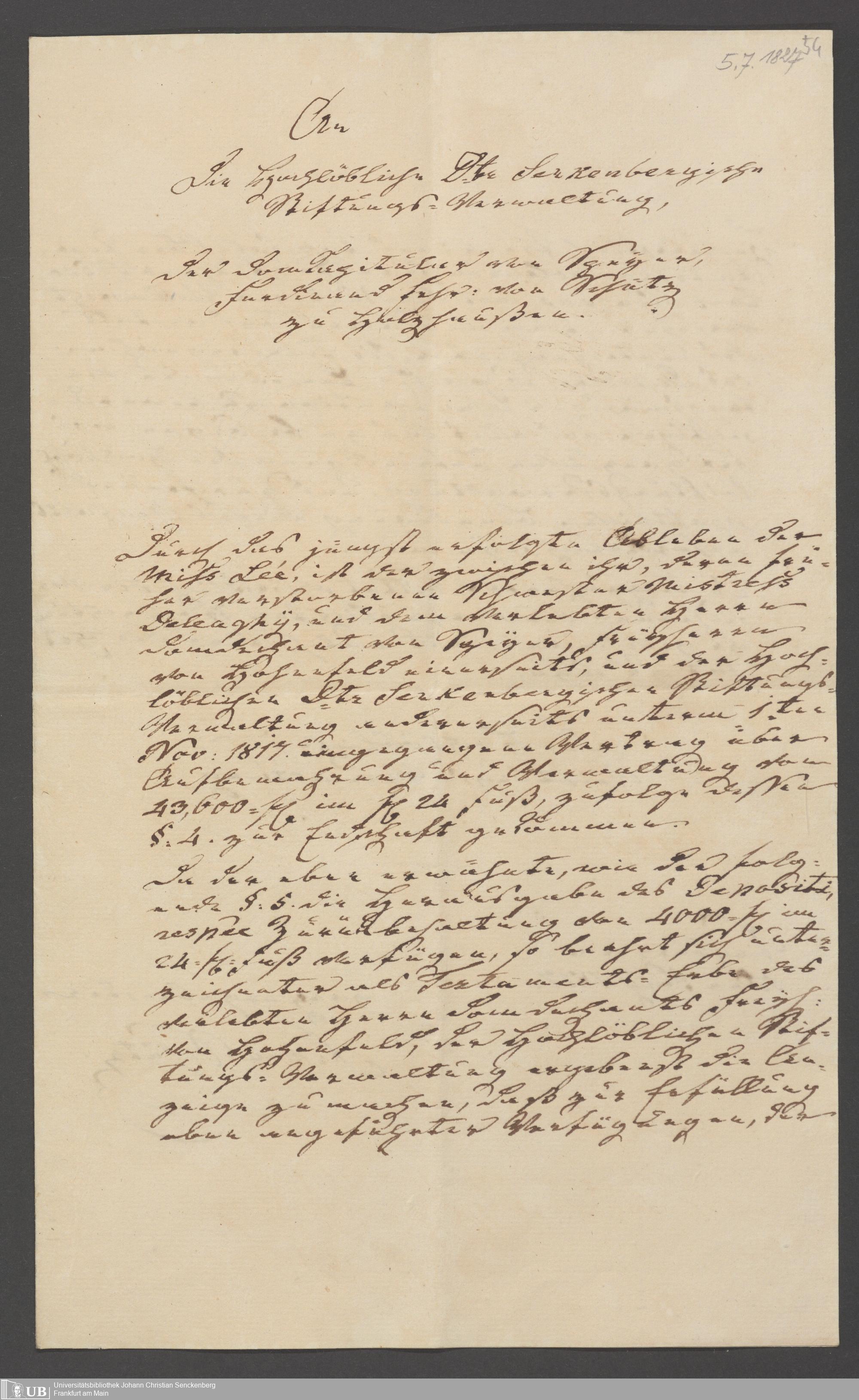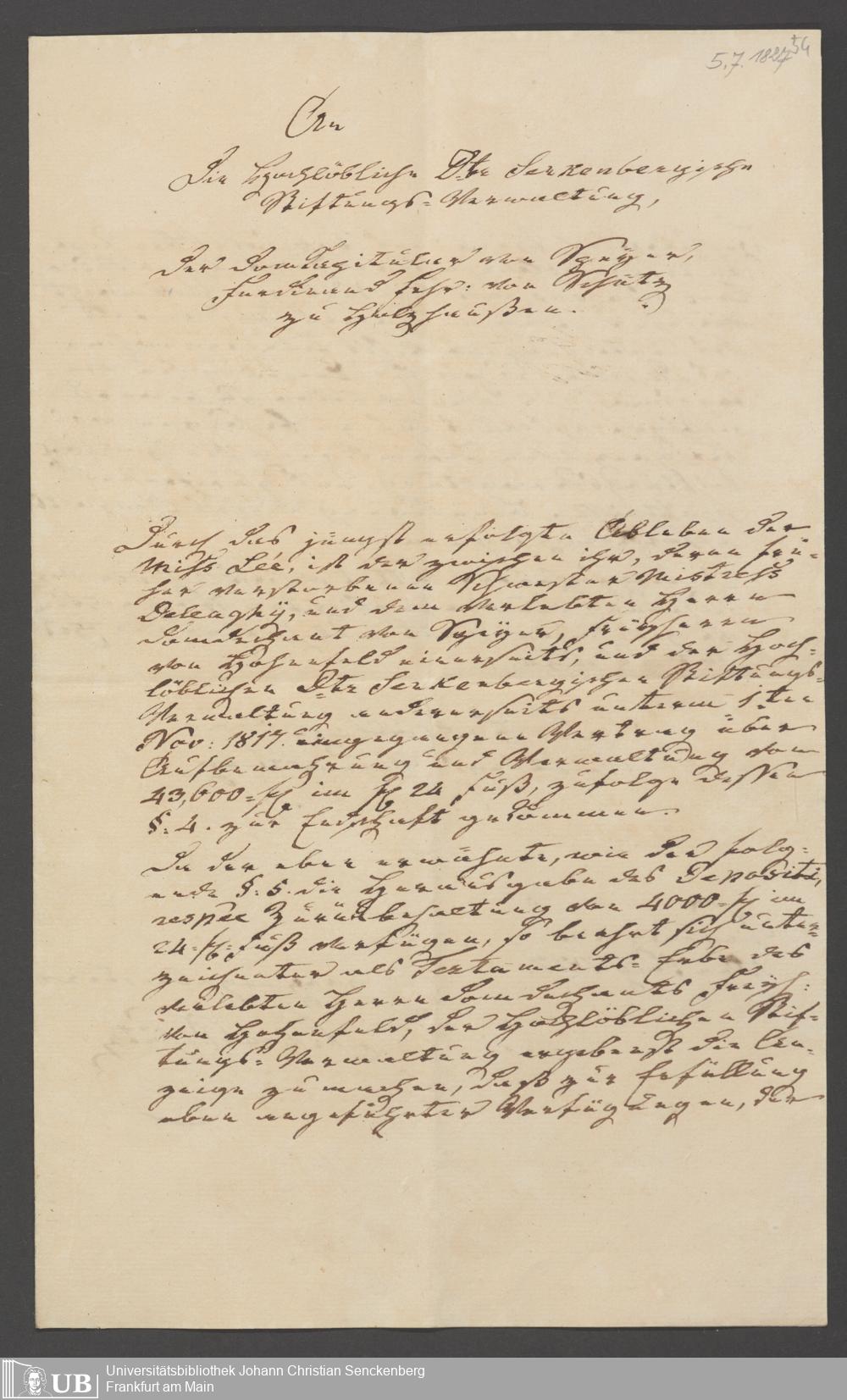 B 5 Dr. Senckenbergische Stiftung, 73 - Vermögensverwaltung durch die Senckenbergische Administration