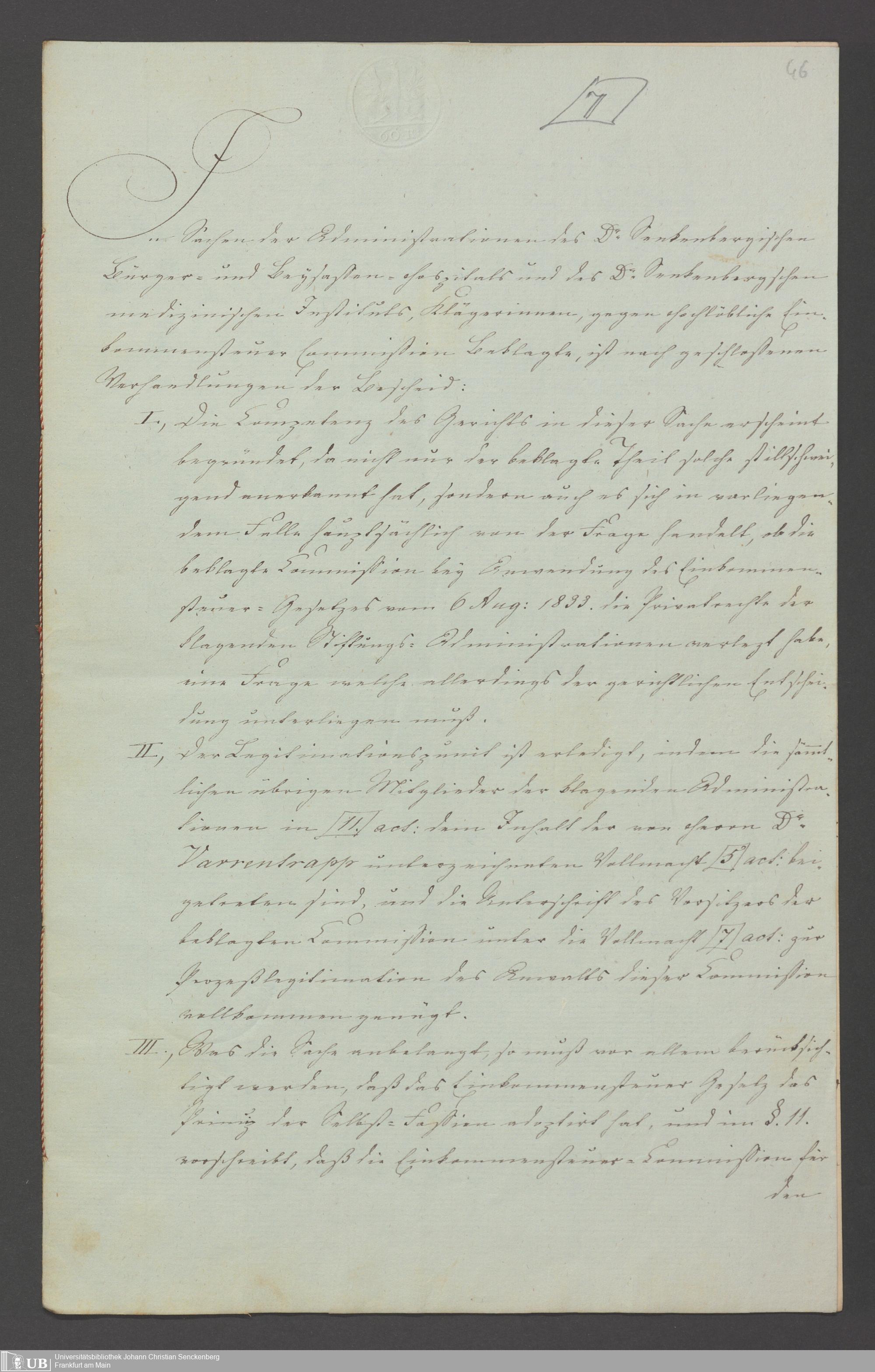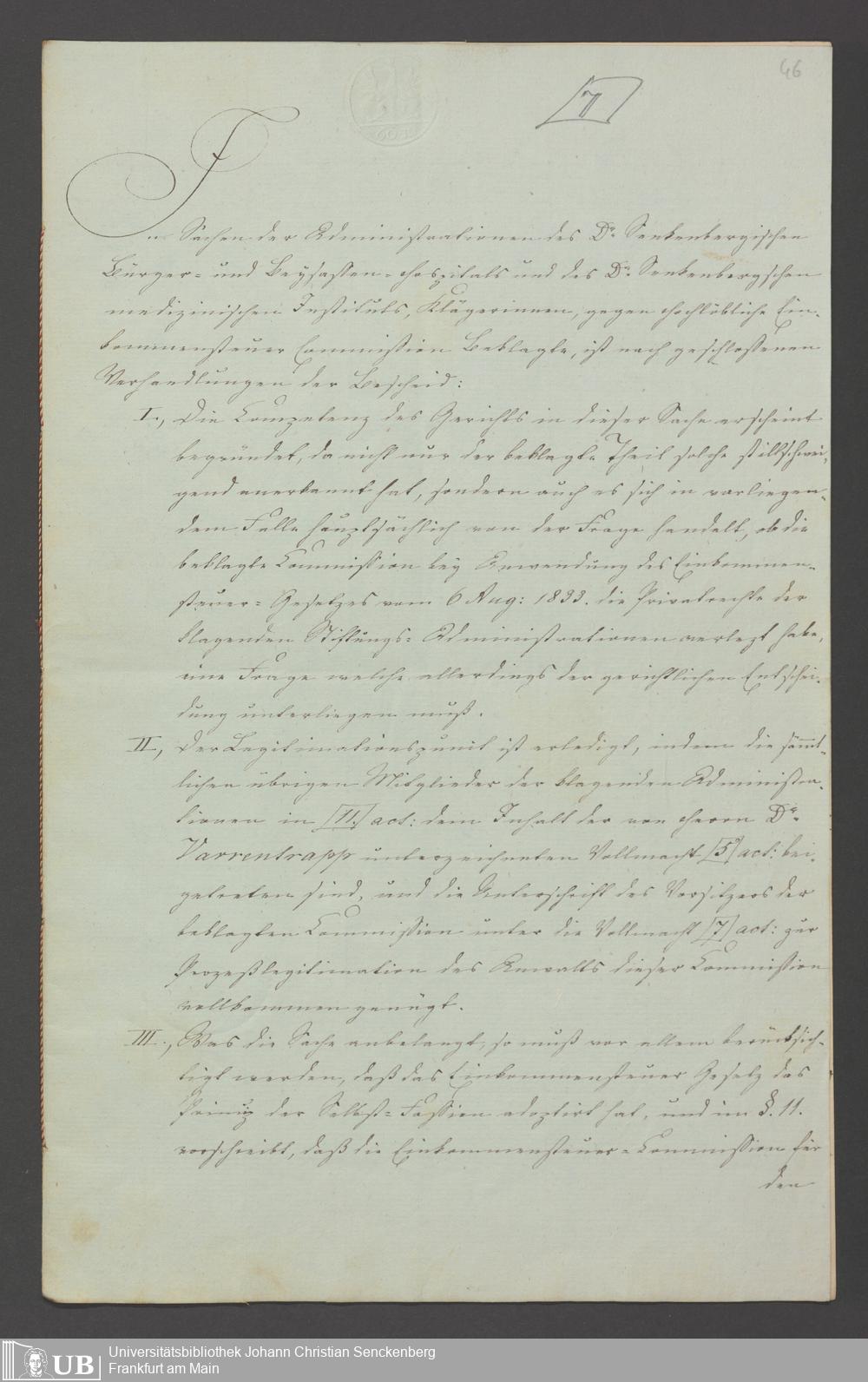 B 5 Dr. Senckenbergische Stiftung, 74 - Einkommenssteuer für das medizinische Institut und das Bürgerhospital