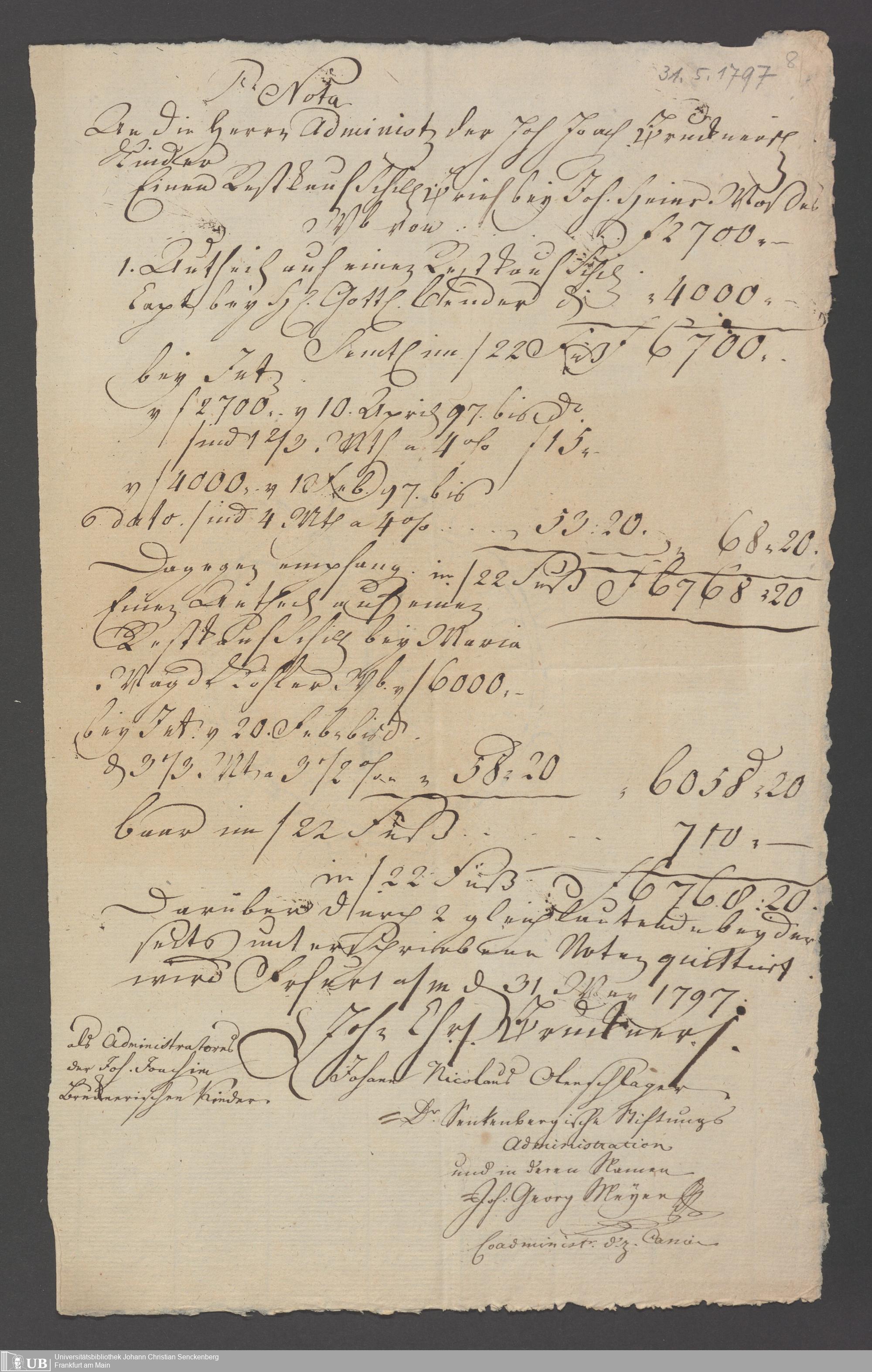 B 5 Dr. Senckenbergische Stiftung, 75 - Einzelne Akten über geschäftliche Tätigkeiten der Administration
