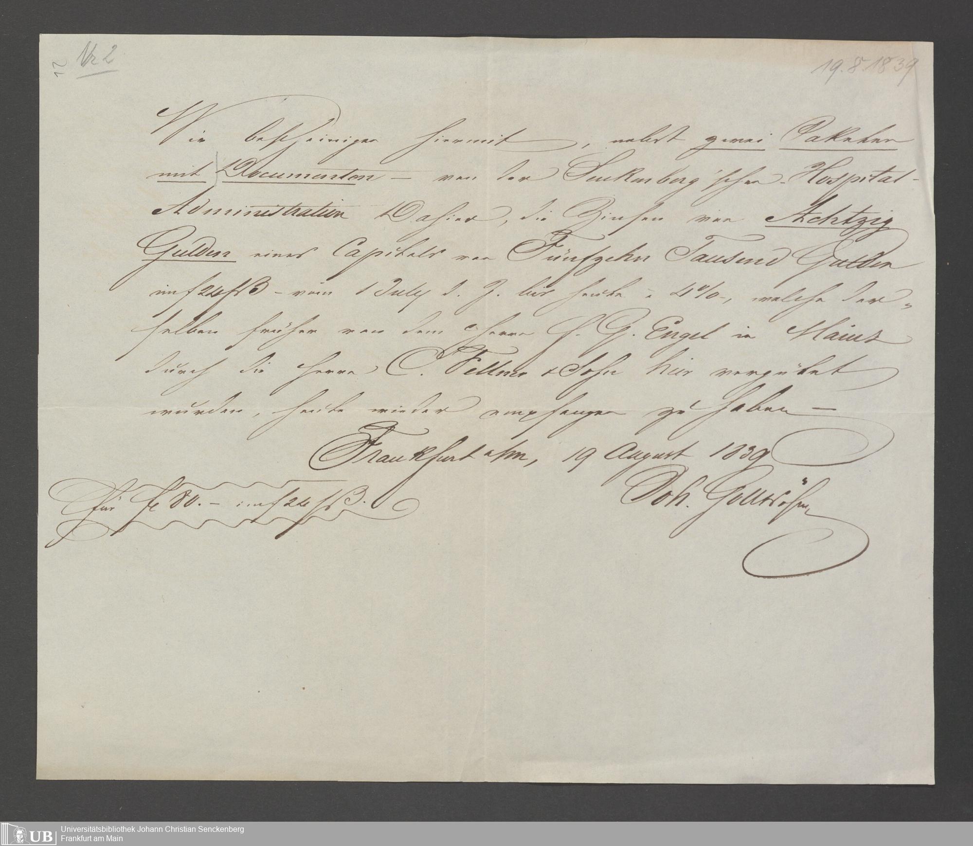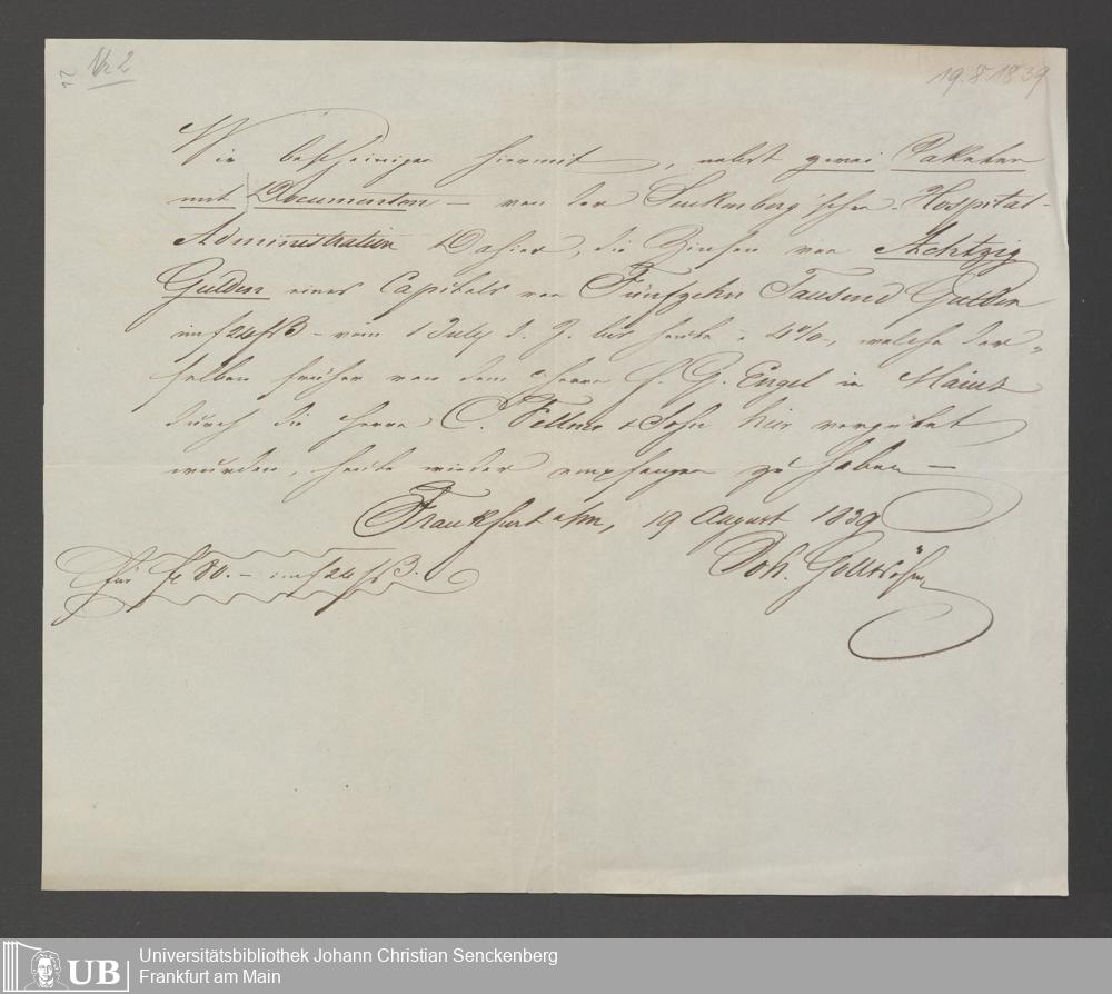 B 5 Dr. Senckenbergische Stiftung, 75 - Einzelne Akten über geschäftliche Tätigkeiten der Administration