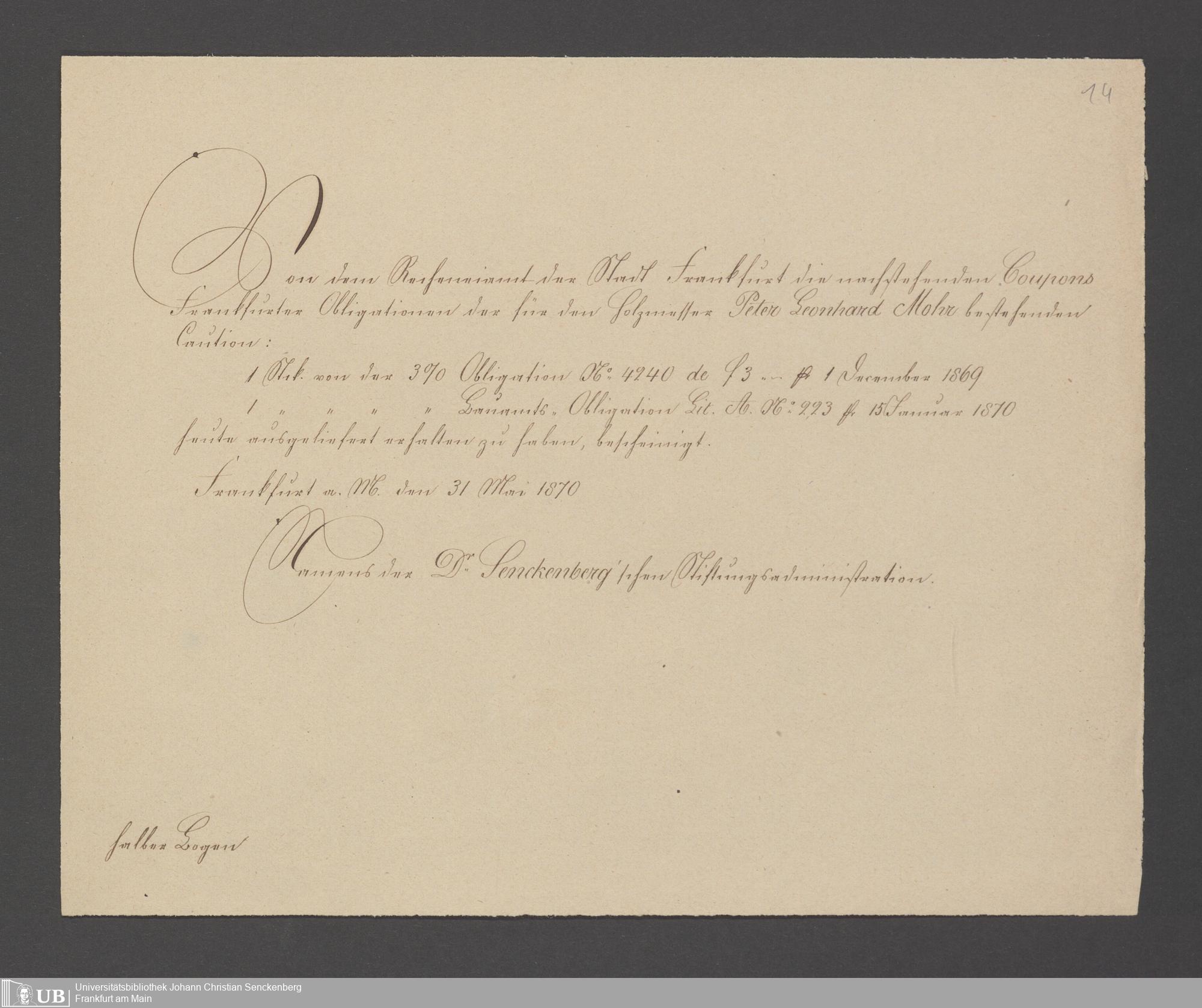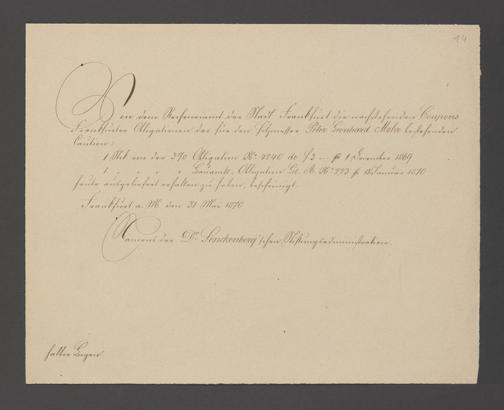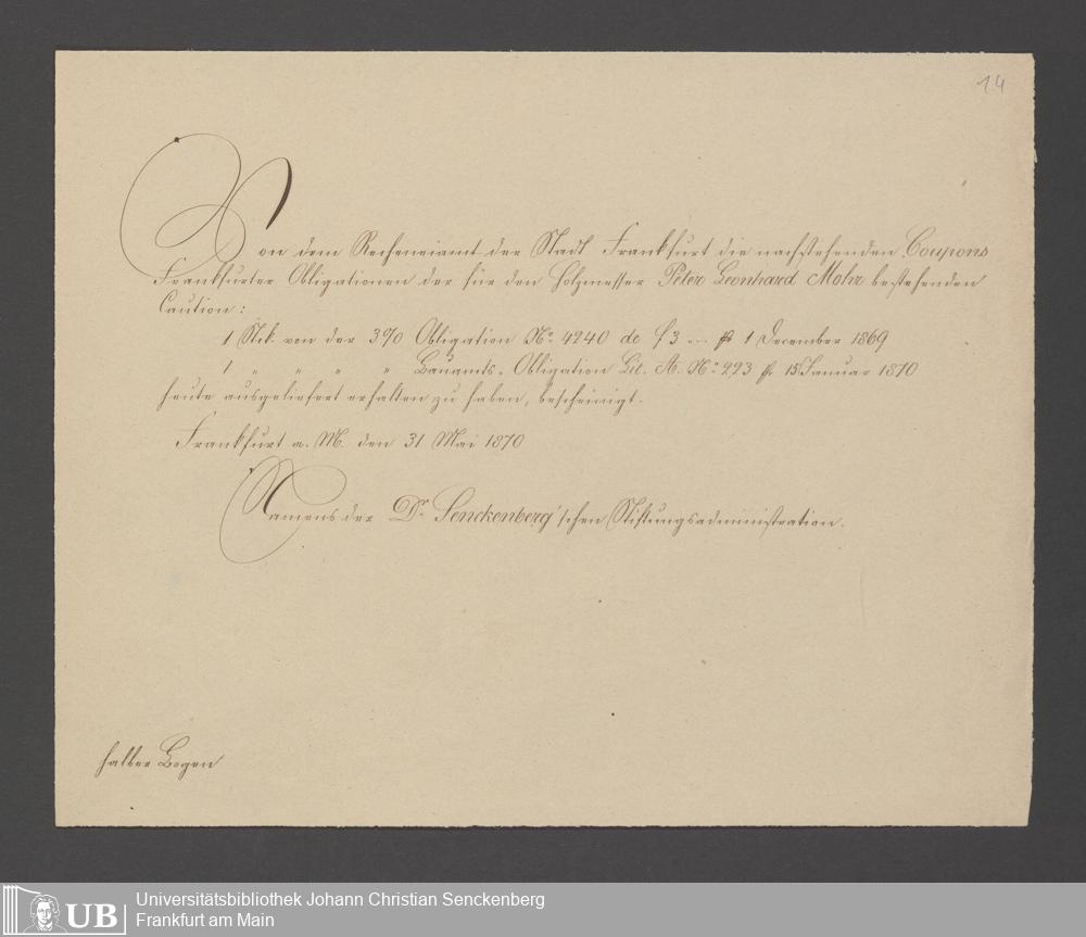 B 5 Dr. Senckenbergische Stiftung, 75 - Einzelne Akten über geschäftliche Tätigkeiten der Administration