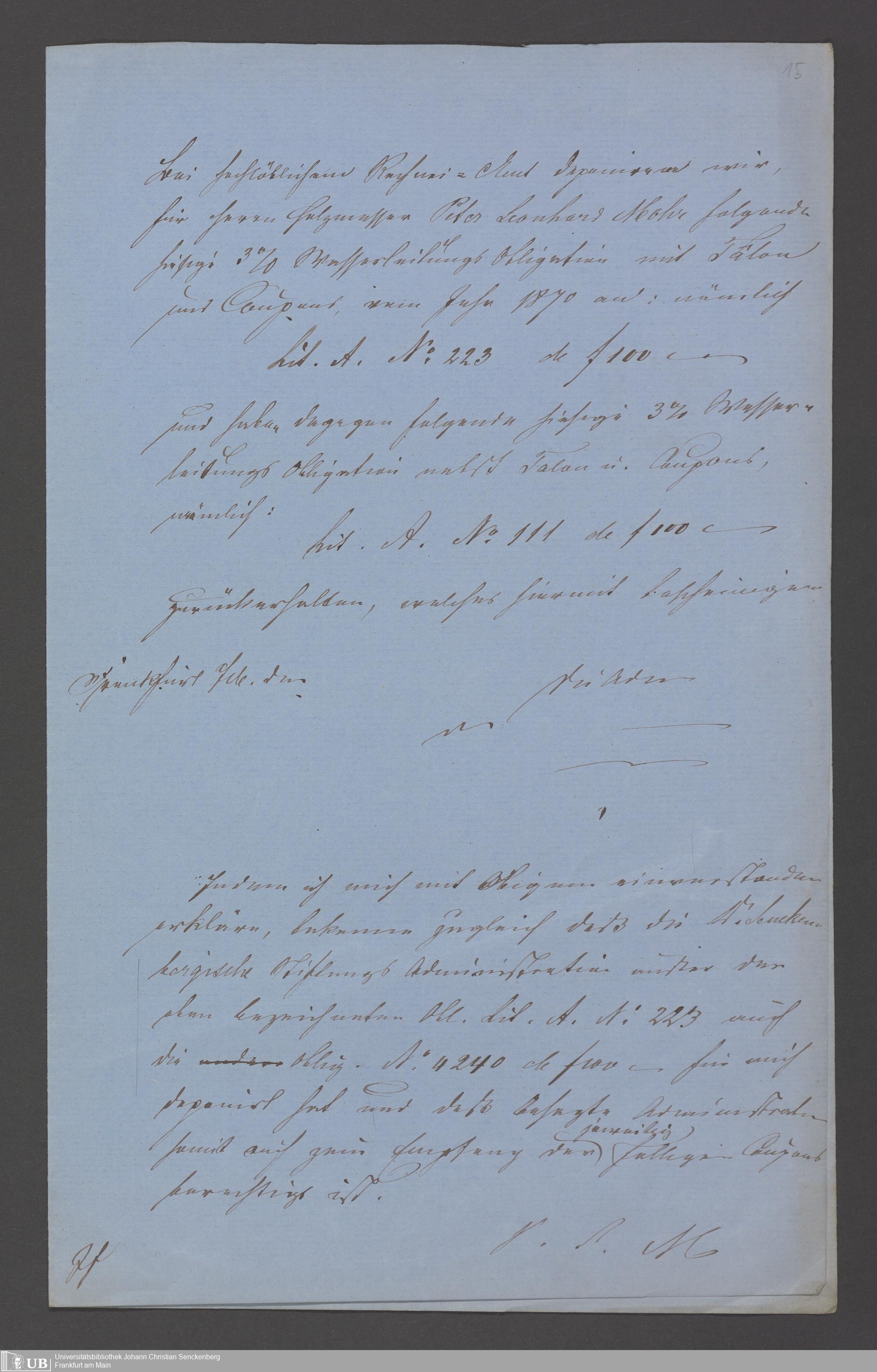 B 5 Dr. Senckenbergische Stiftung, 75 - Einzelne Akten über geschäftliche Tätigkeiten der Administration