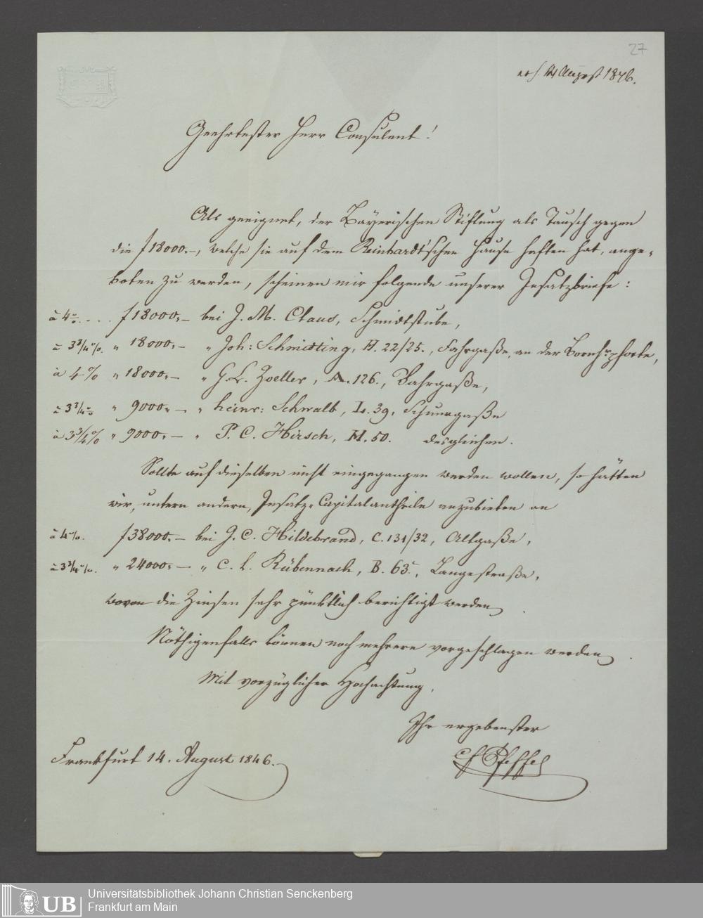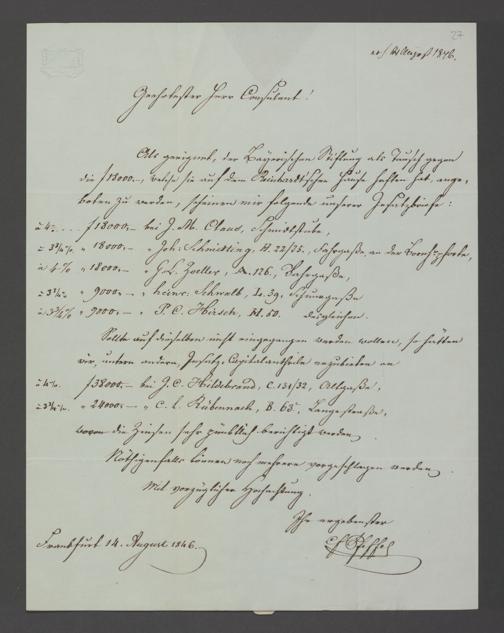 B 5 Dr. Senckenbergische Stiftung, 75 - Einzelne Akten über geschäftliche Tätigkeiten der Administration