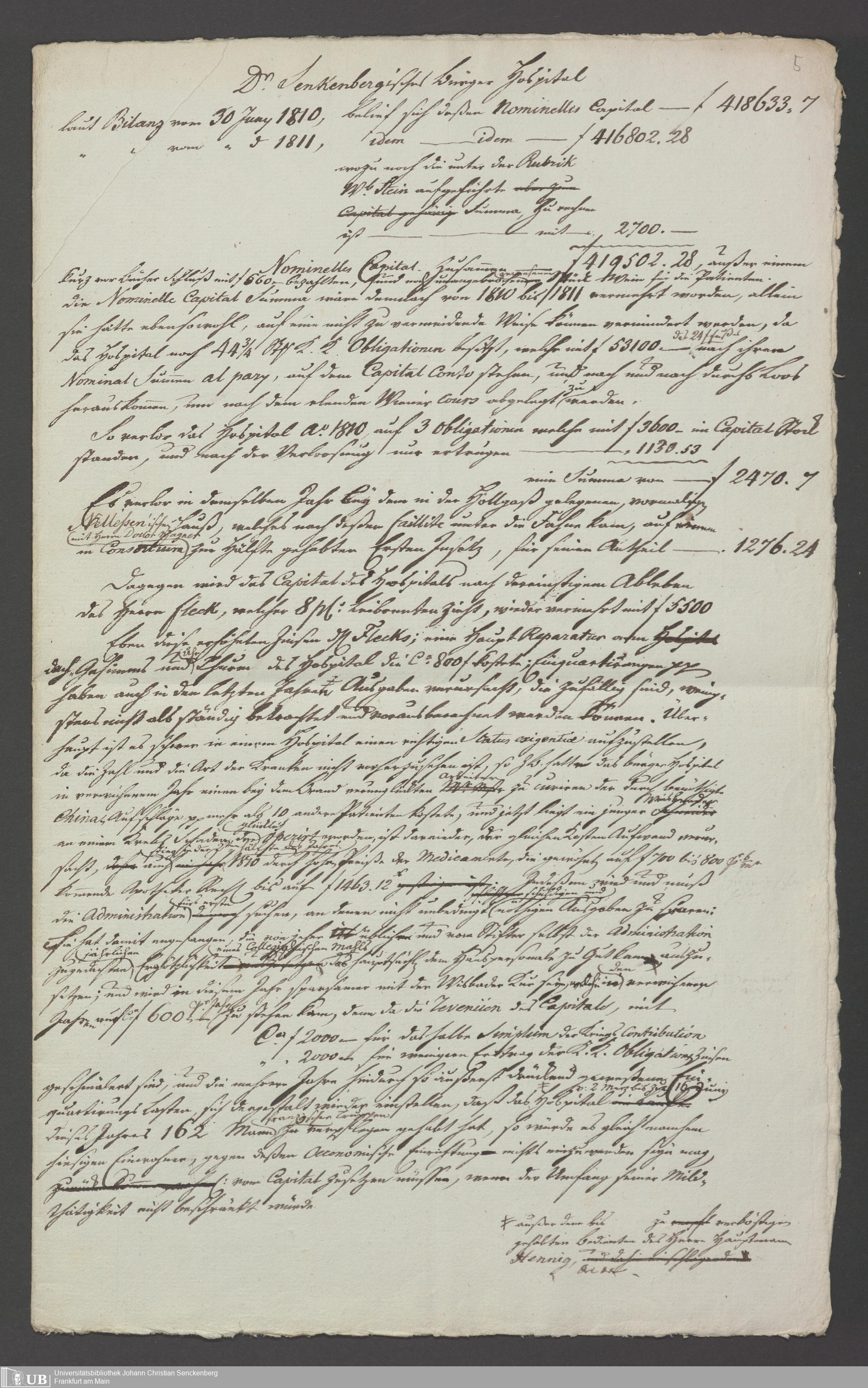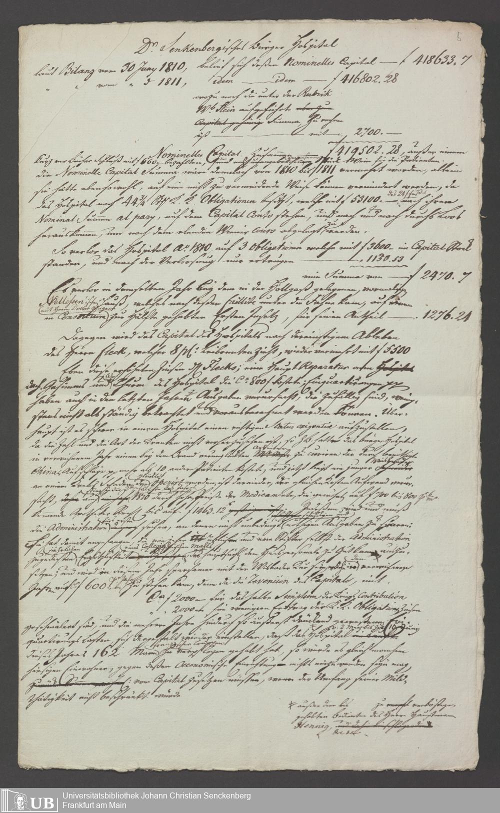 B 5 Dr. Senckenbergische Stiftung, 77 - Etataufstellung des Bürgerhospitals