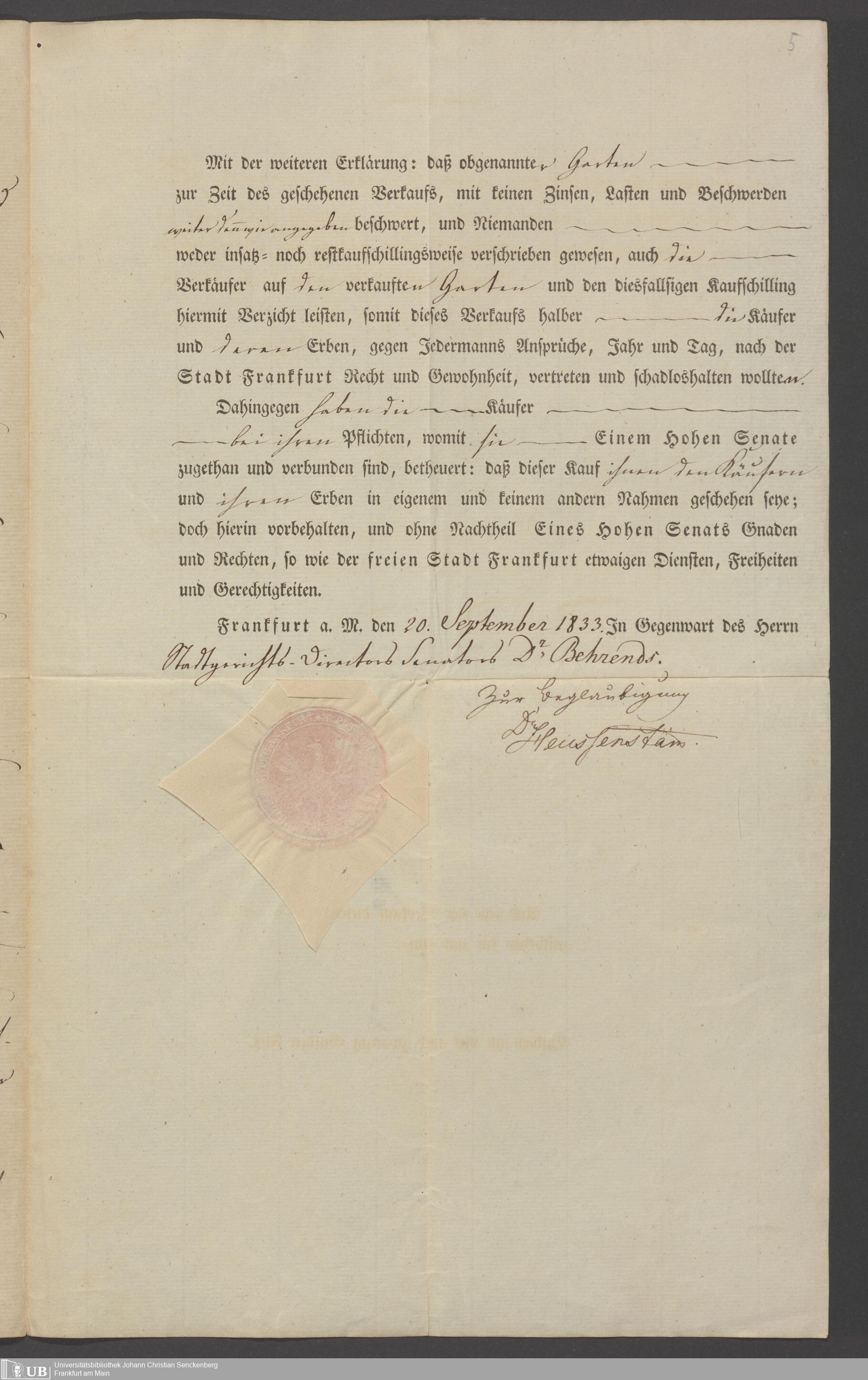 B 5 Dr. Senckenbergische Stiftung, 78 - Kaufvertrag über einen Garten