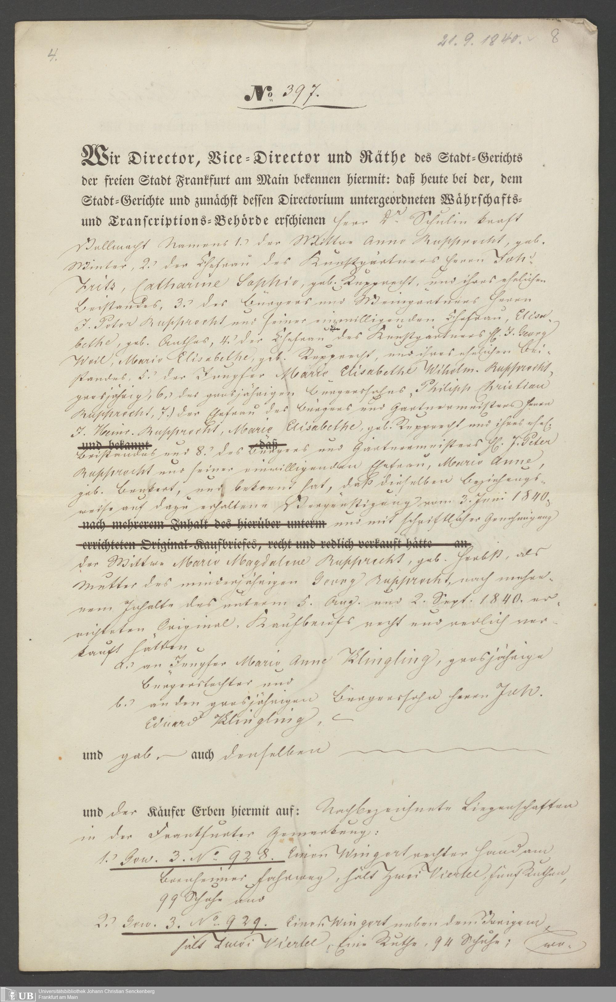 B 5 Dr. Senckenbergische Stiftung, 78 - Kaufvertrag über einen Garten