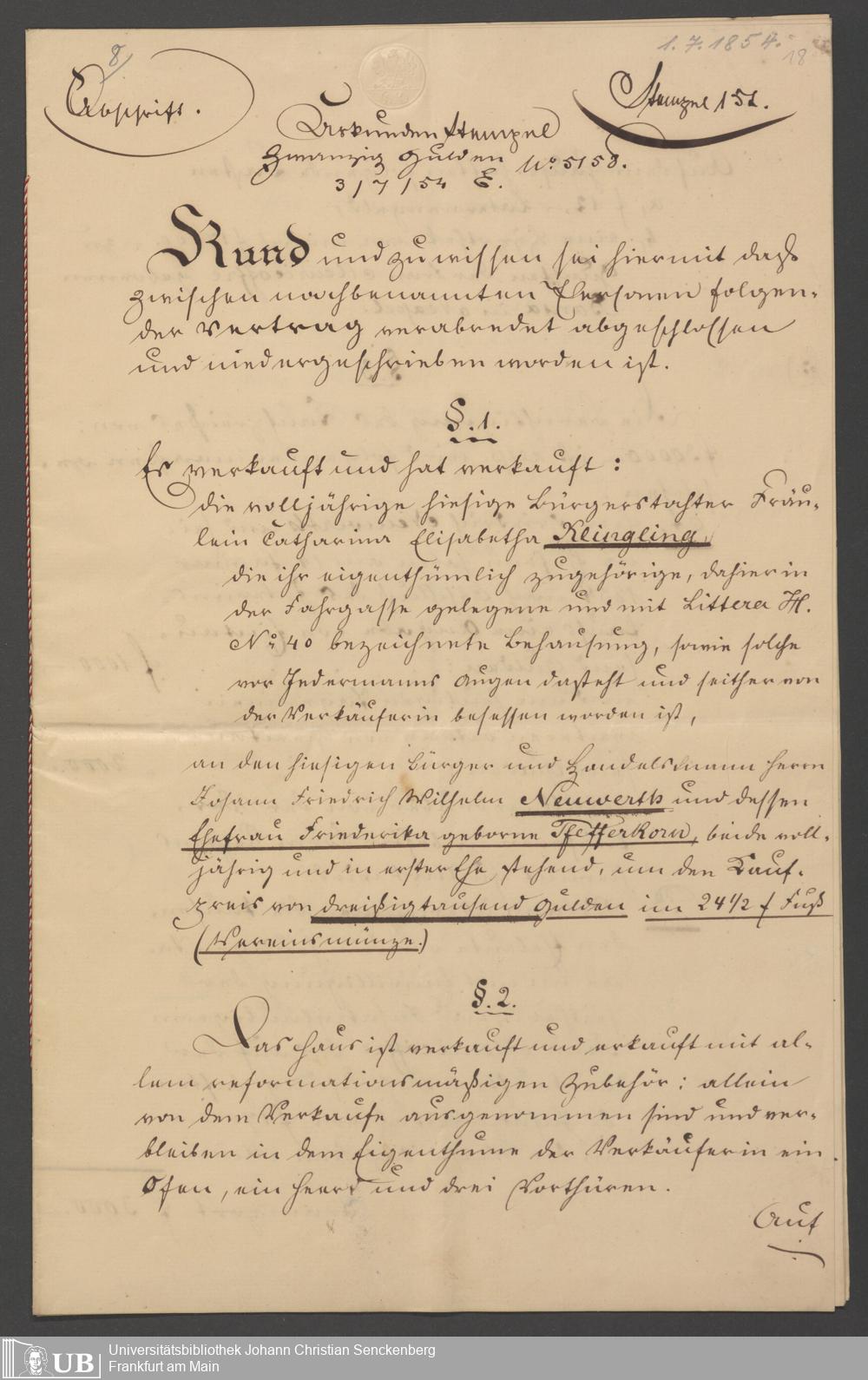 B 5 Dr. Senckenbergische Stiftung, 78 - Kaufvertrag über einen Garten