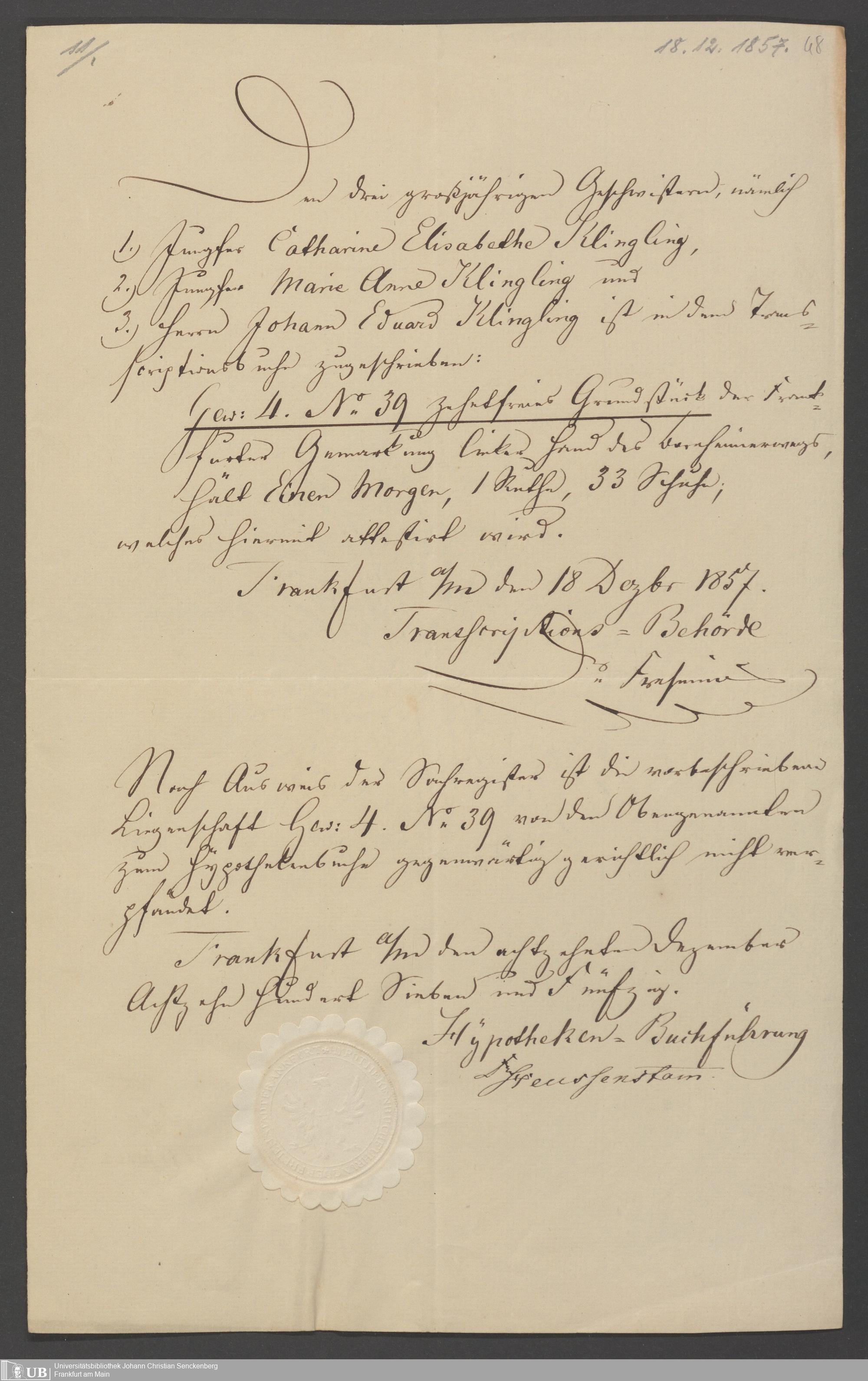 B 5 Dr. Senckenbergische Stiftung, 78 - Kaufvertrag über einen Garten