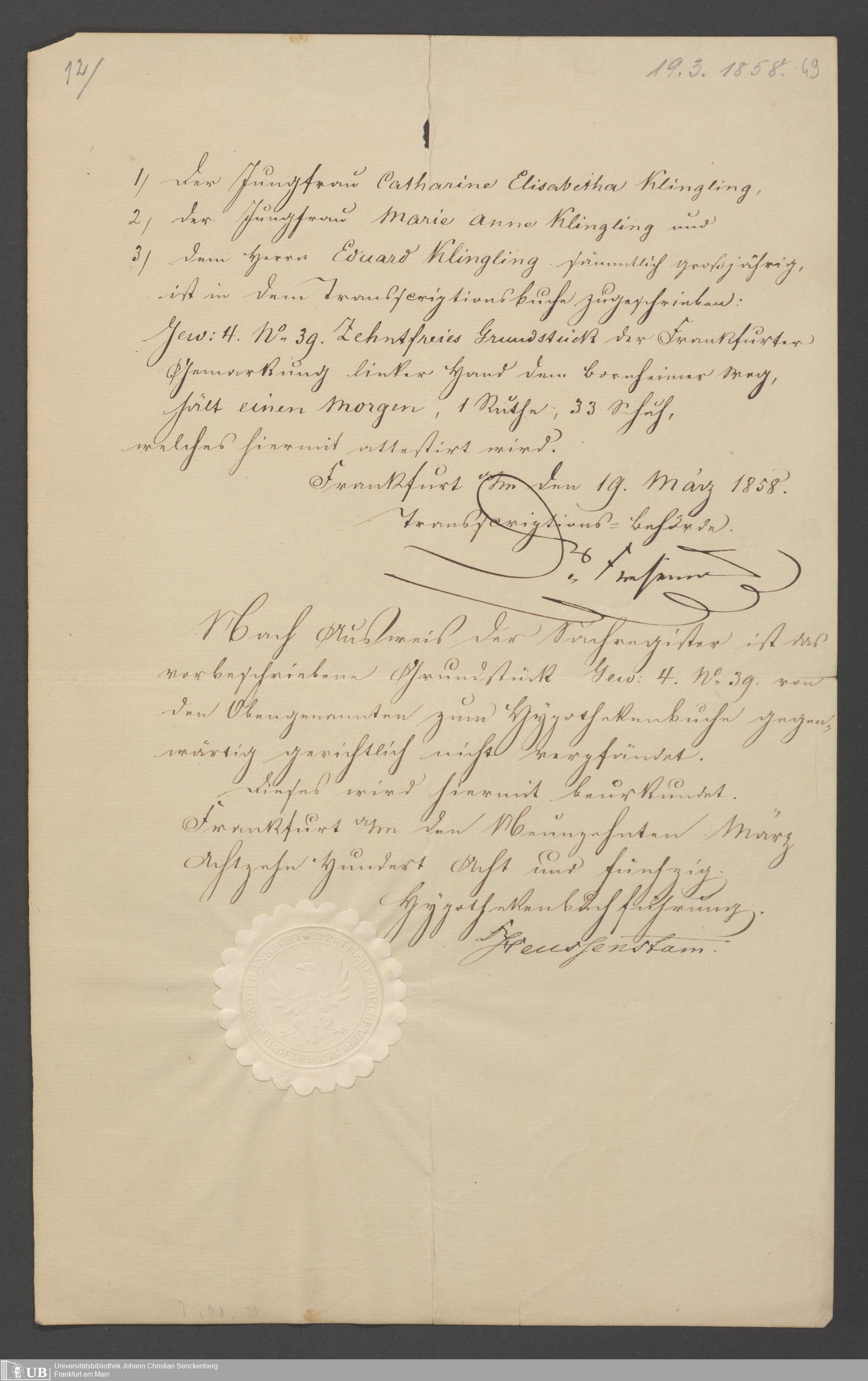B 5 Dr. Senckenbergische Stiftung, 78 - Kaufvertrag über einen Garten