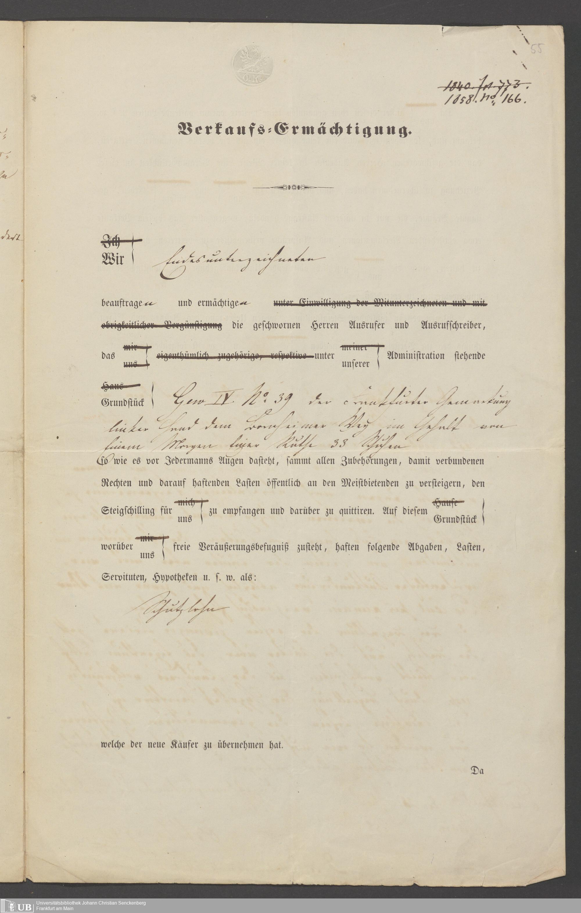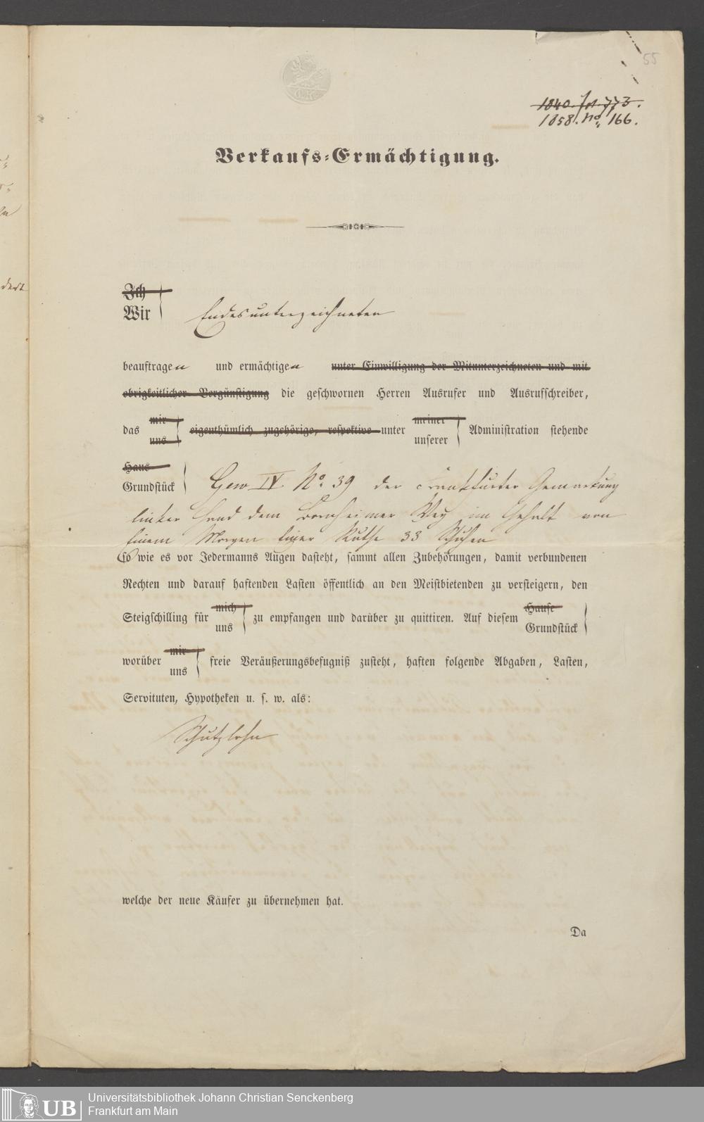 B 5 Dr. Senckenbergische Stiftung, 78 - Kaufvertrag über einen Garten