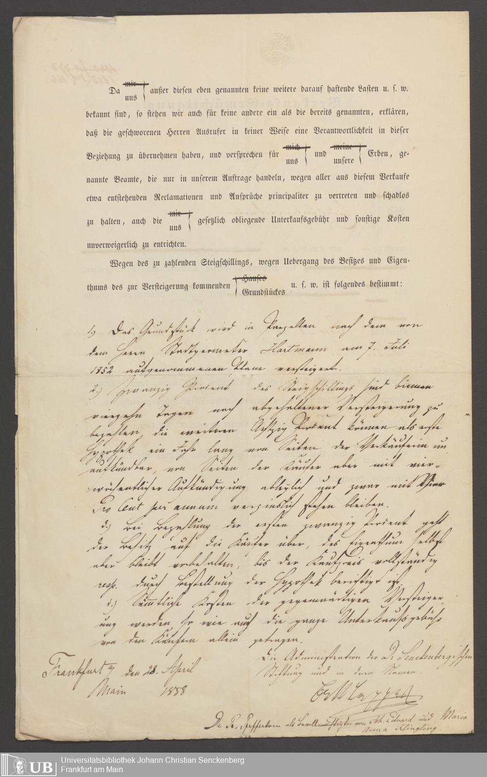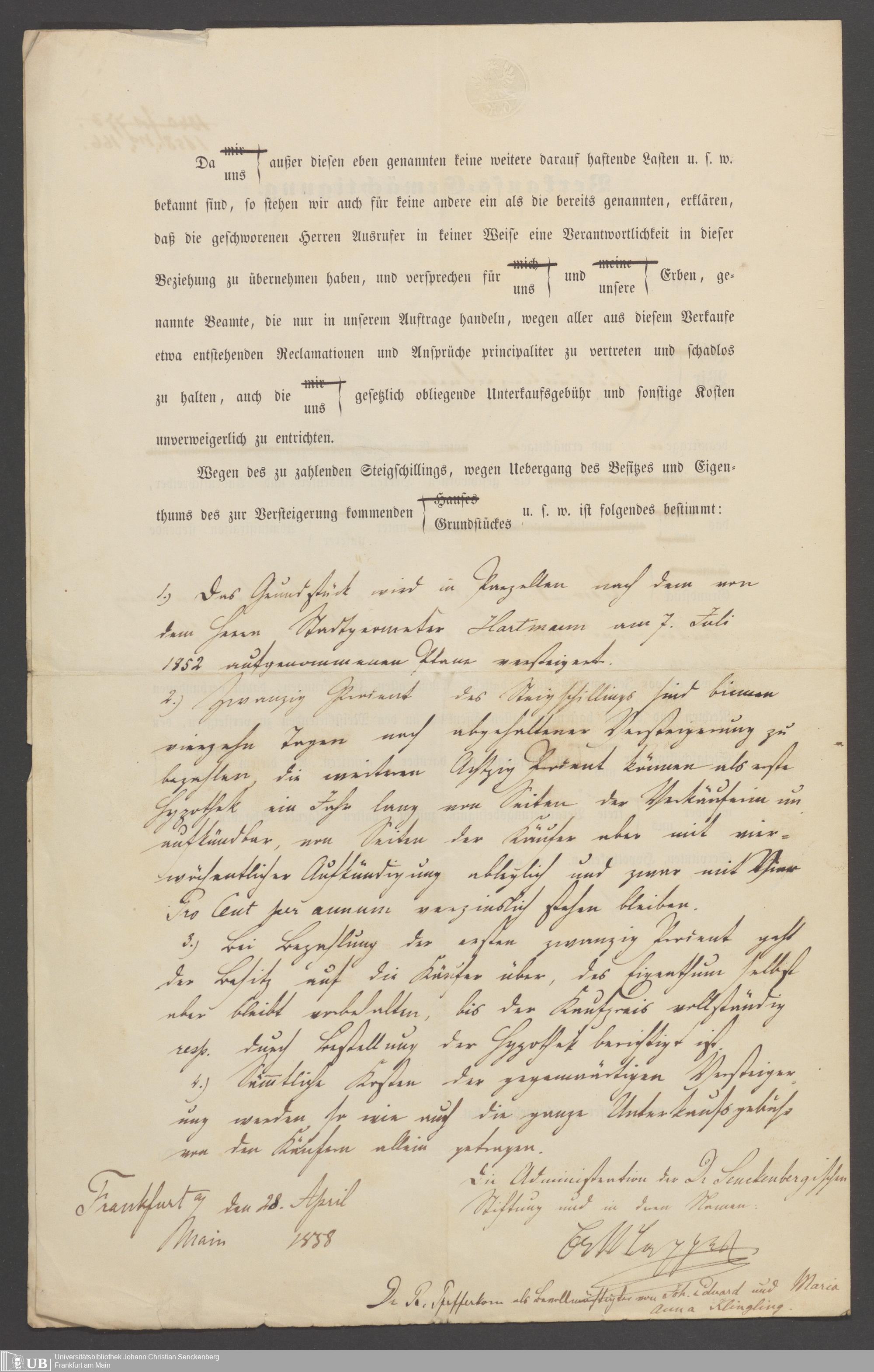 B 5 Dr. Senckenbergische Stiftung, 78 - Kaufvertrag über einen Garten