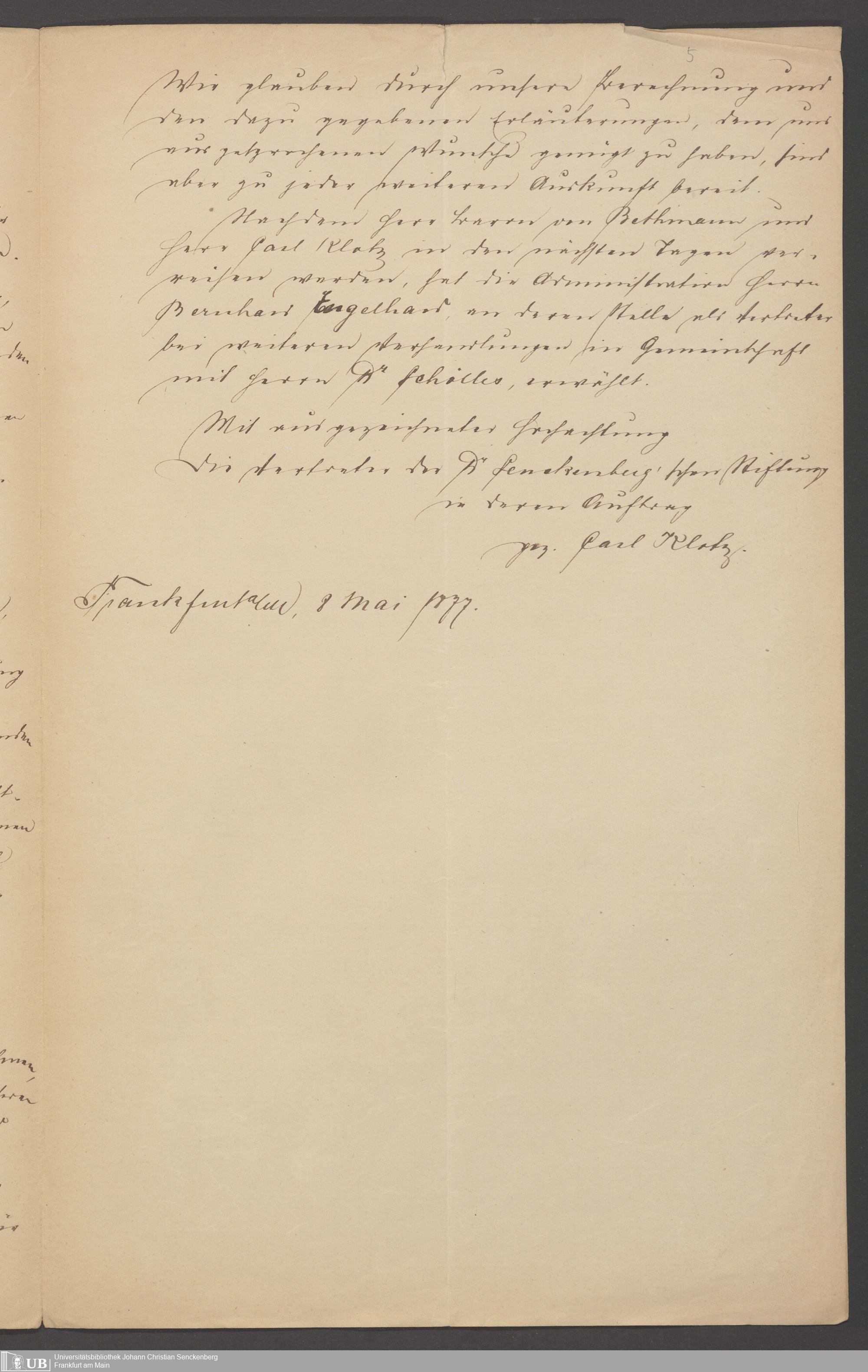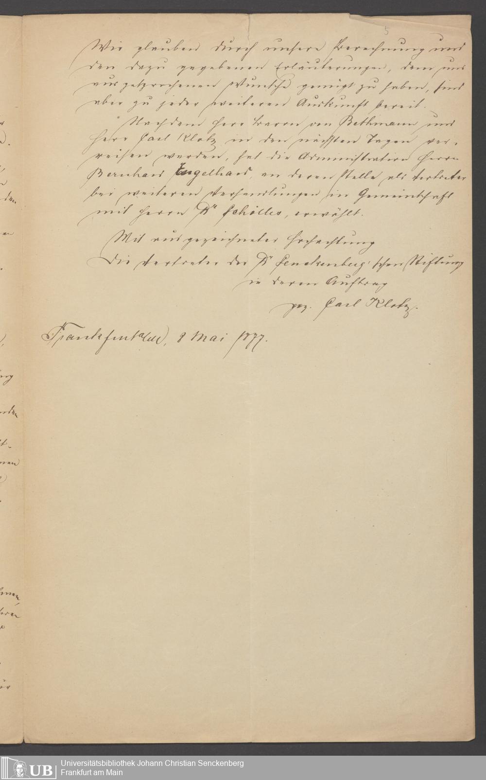 B 5 Dr. Senckenbergische Stiftung, 80 - Verhandlungen der Administration über das Defizit und Anleihe von der Stadt