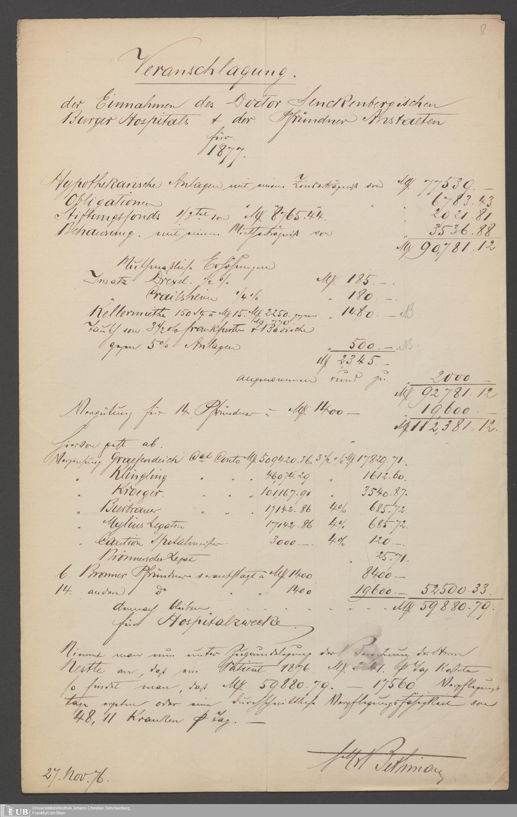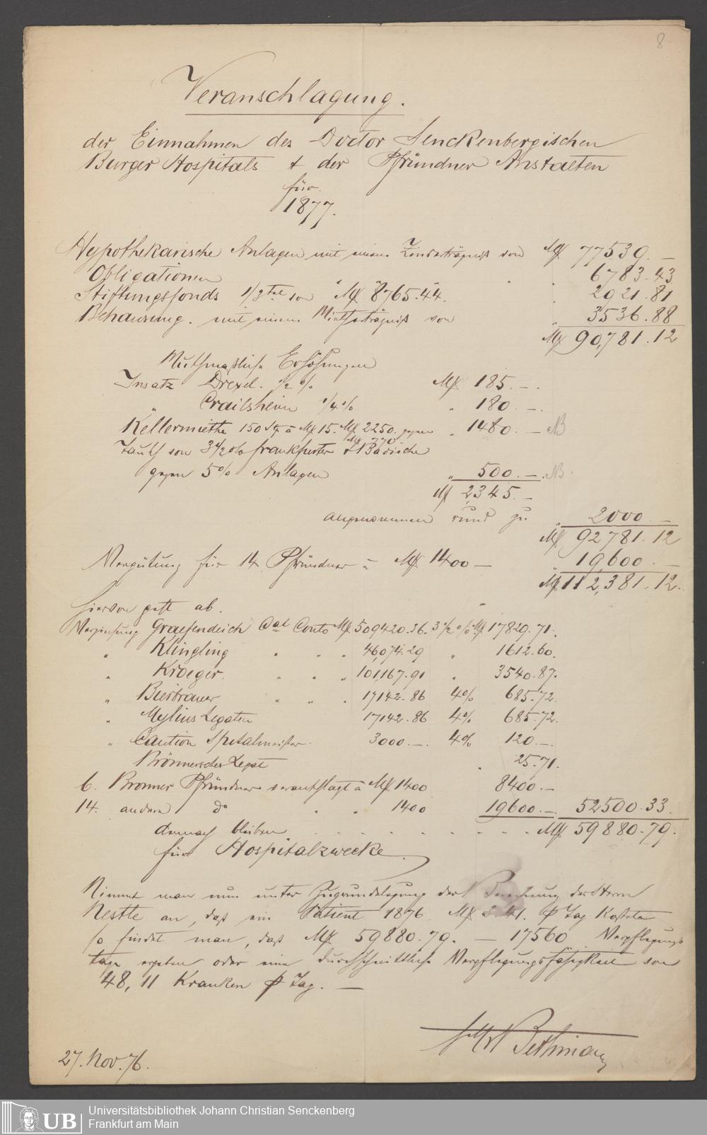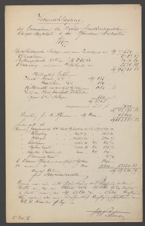 B 5 Dr. Senckenbergische Stiftung, 80 - Verhandlungen der Administration über das Defizit und Anleihe von der Stadt