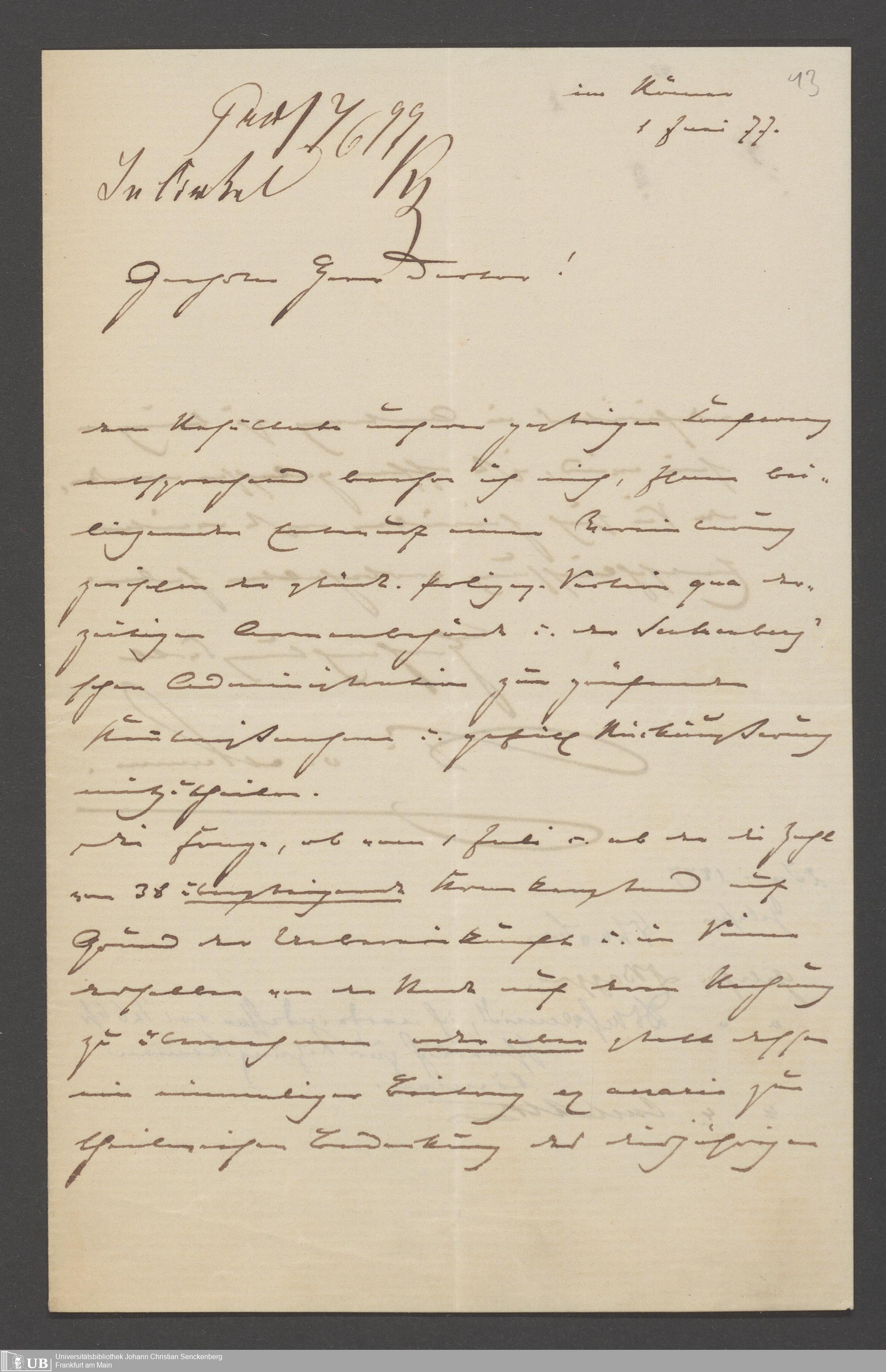 B 5 Dr. Senckenbergische Stiftung, 80 - Verhandlungen der Administration über das Defizit und Anleihe von der Stadt