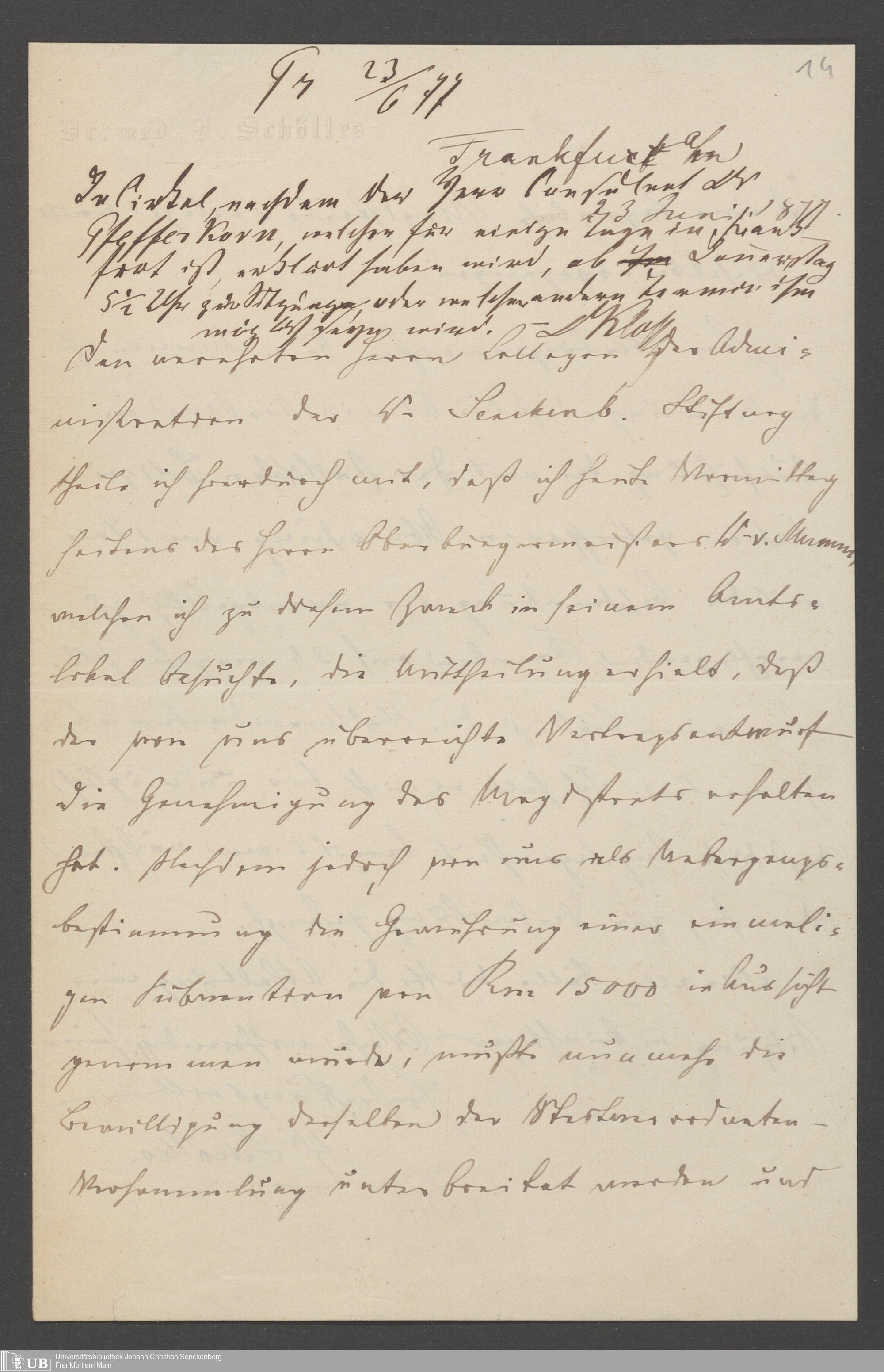 B 5 Dr. Senckenbergische Stiftung, 80 - Verhandlungen der Administration über das Defizit und Anleihe von der Stadt