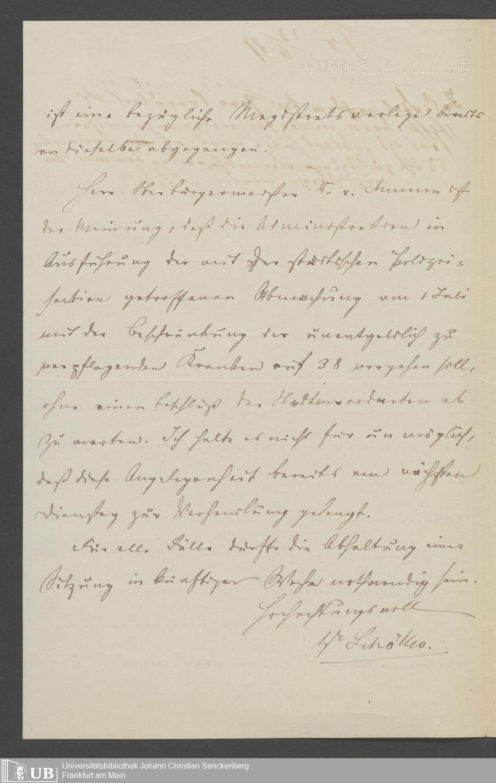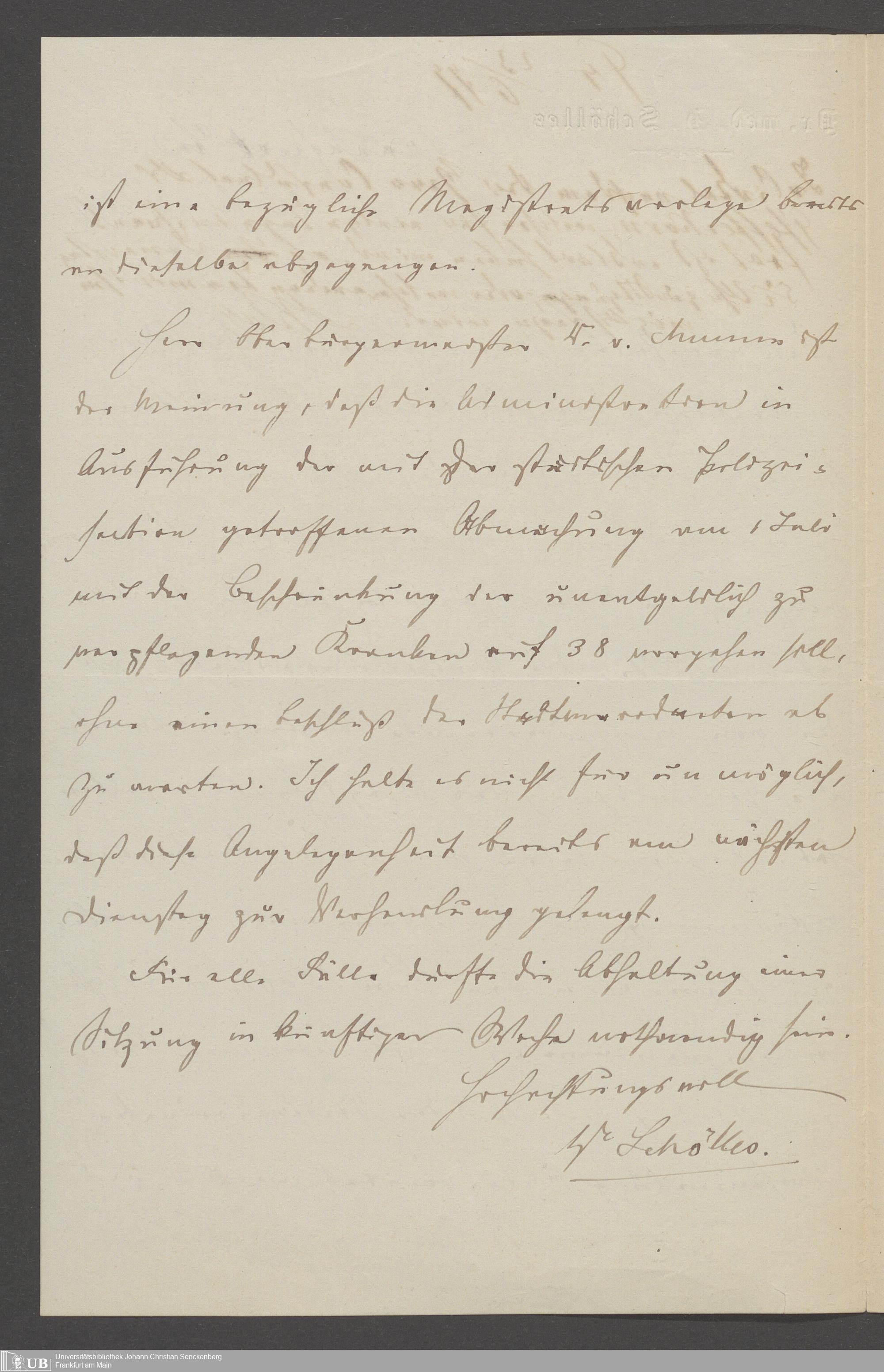 B 5 Dr. Senckenbergische Stiftung, 80 - Verhandlungen der Administration über das Defizit und Anleihe von der Stadt