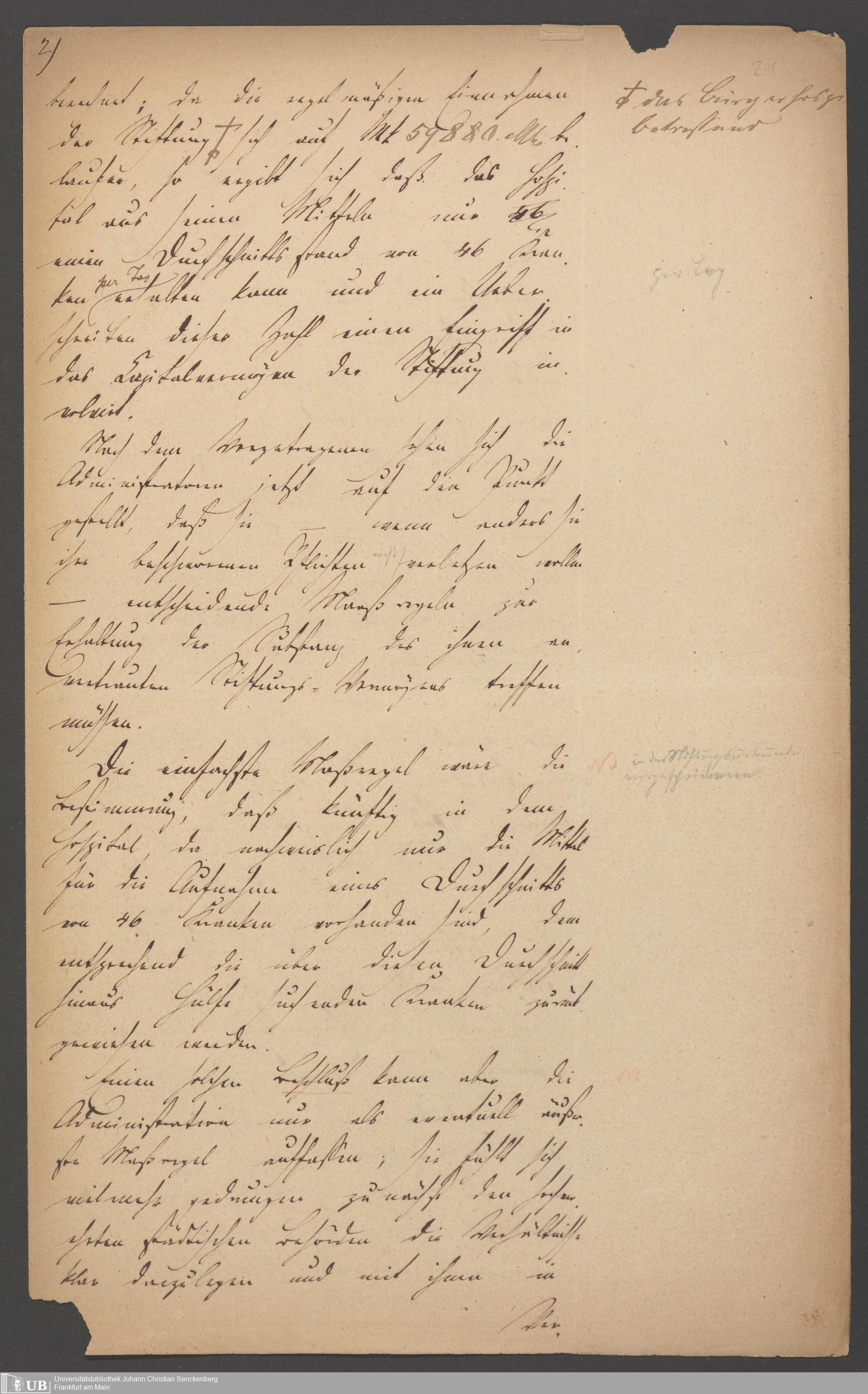 B 5 Dr. Senckenbergische Stiftung, 80 - Verhandlungen der Administration über das Defizit und Anleihe von der Stadt