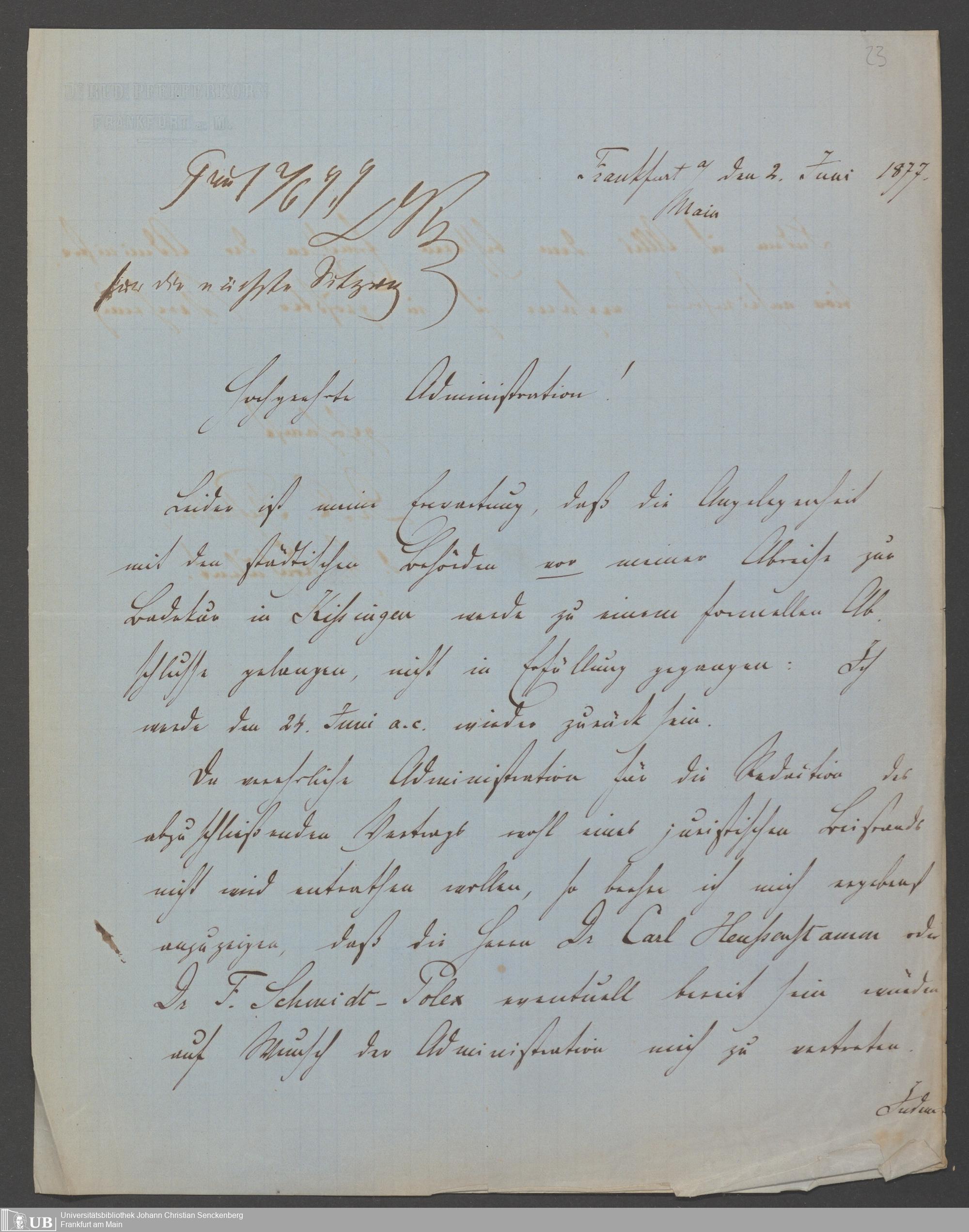 B 5 Dr. Senckenbergische Stiftung, 80 - Verhandlungen der Administration über das Defizit und Anleihe von der Stadt