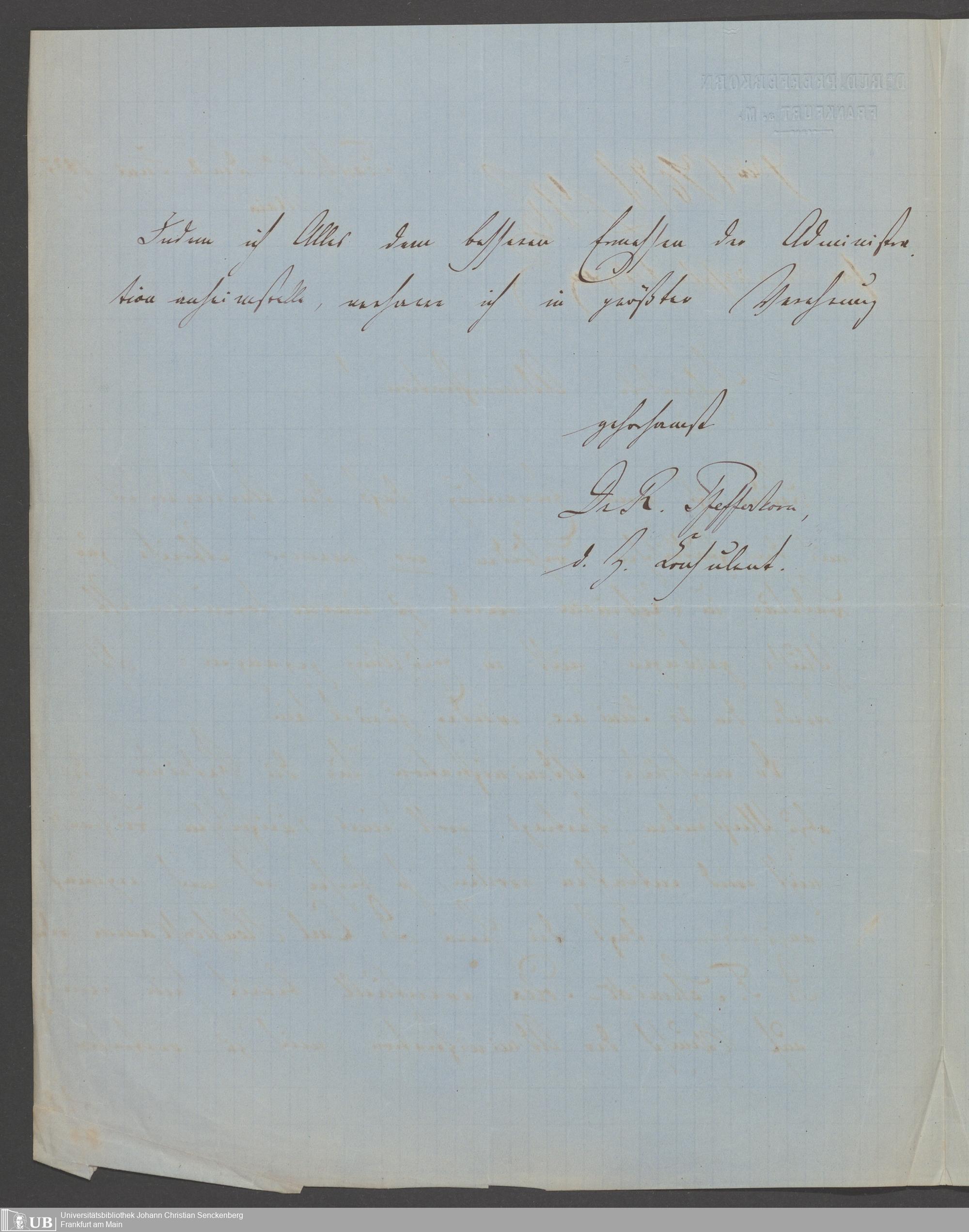 B 5 Dr. Senckenbergische Stiftung, 80 - Verhandlungen der Administration über das Defizit und Anleihe von der Stadt