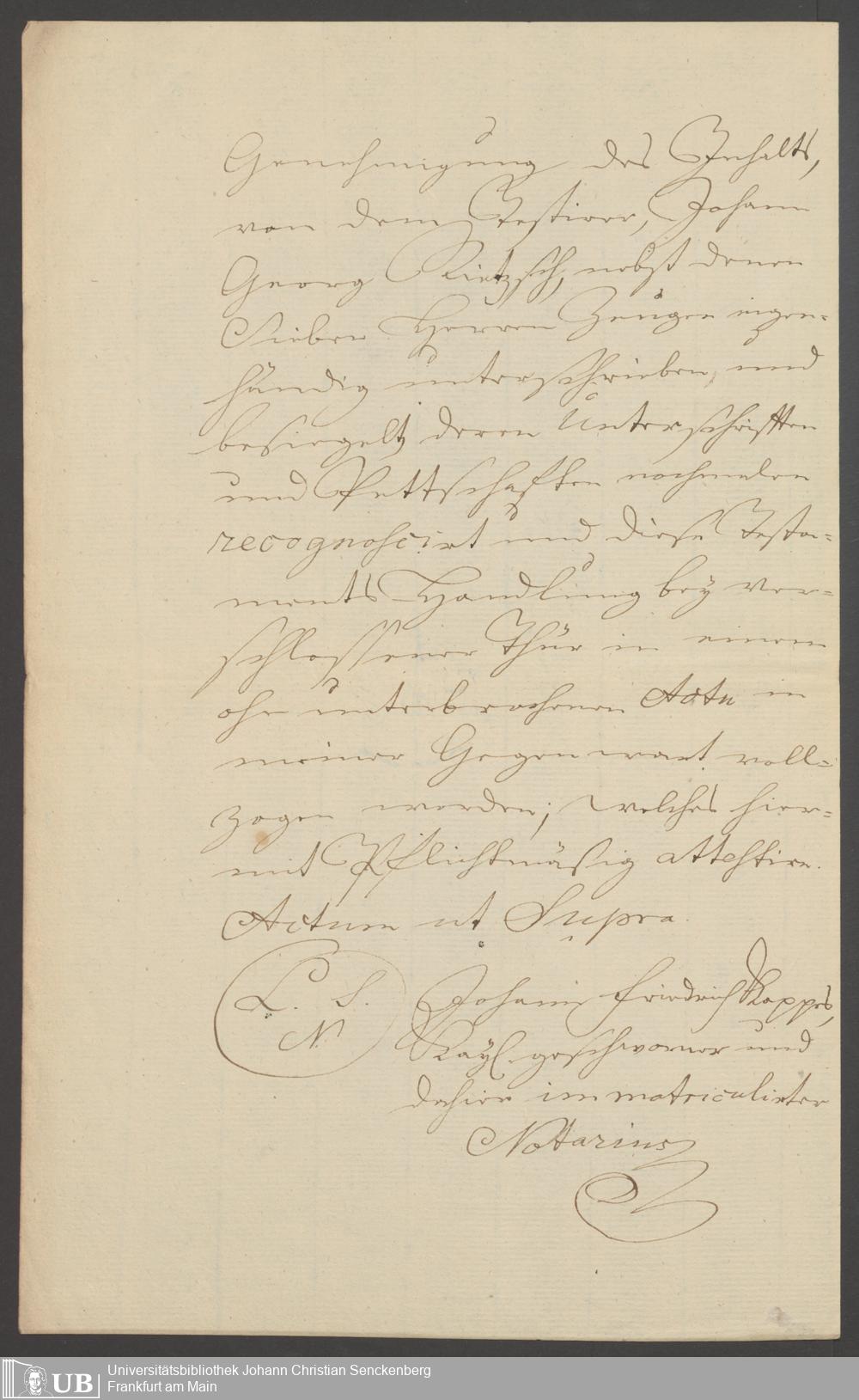 B 5 Dr. Senckenbergische Stiftung, 124 - Testament Georg Ritsch