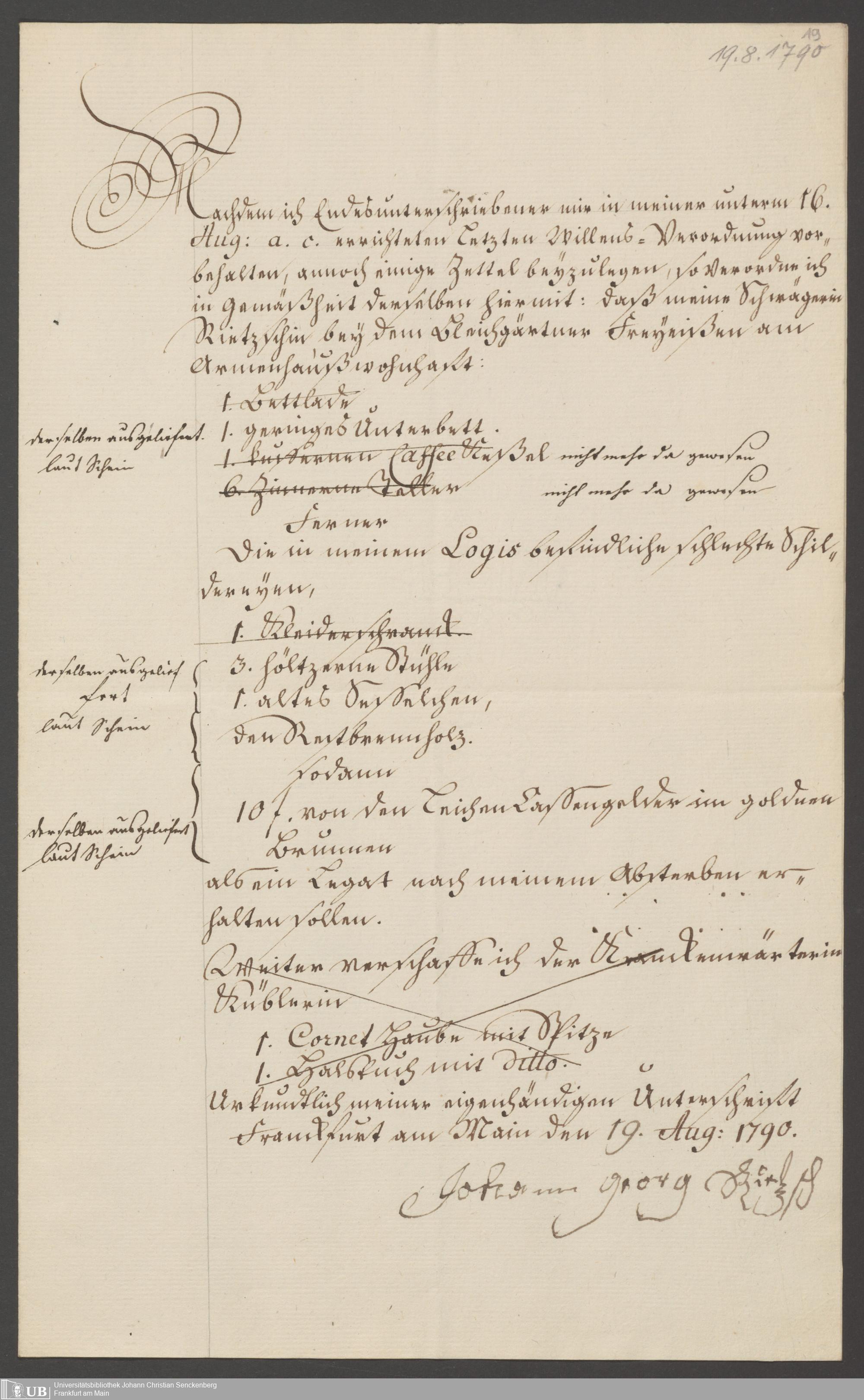 B 5 Dr. Senckenbergische Stiftung, 124 - Testament Georg Ritsch