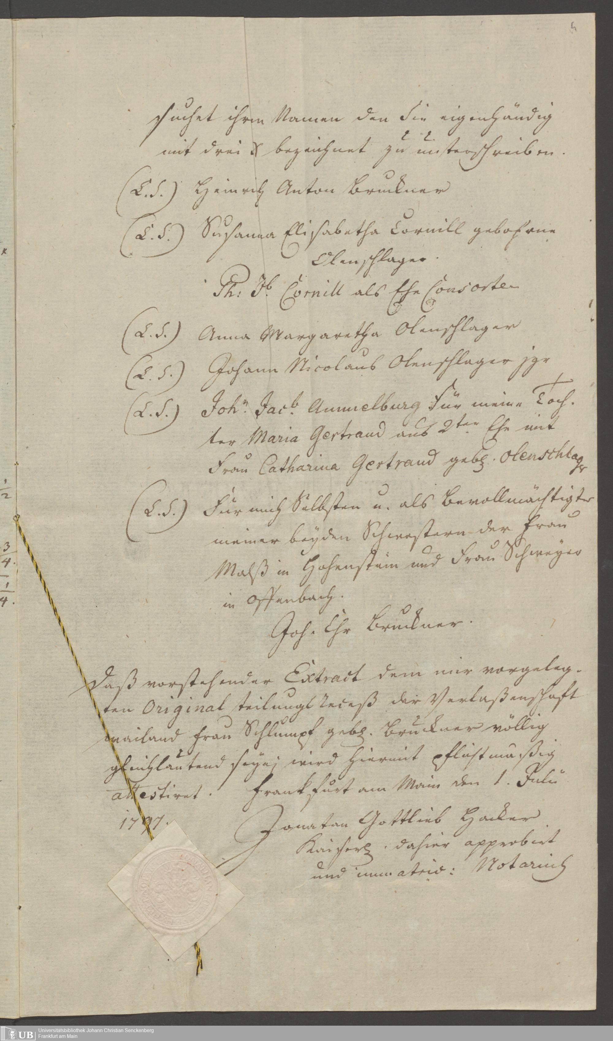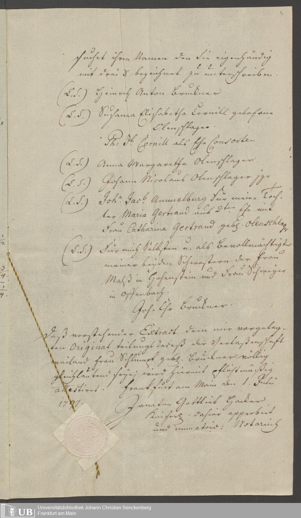 B 5 Dr. Senckenbergische Stiftung, 126 - Teilungsrezess der Verlassenschaft der Frau Schlumpf, geb. Bruckner