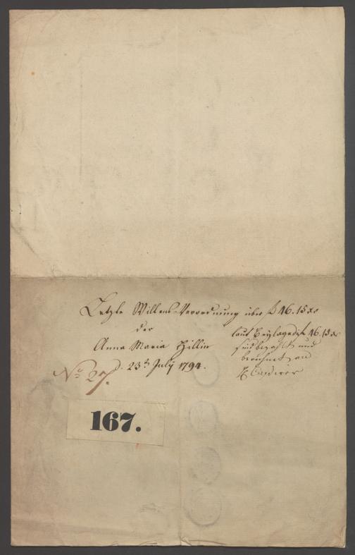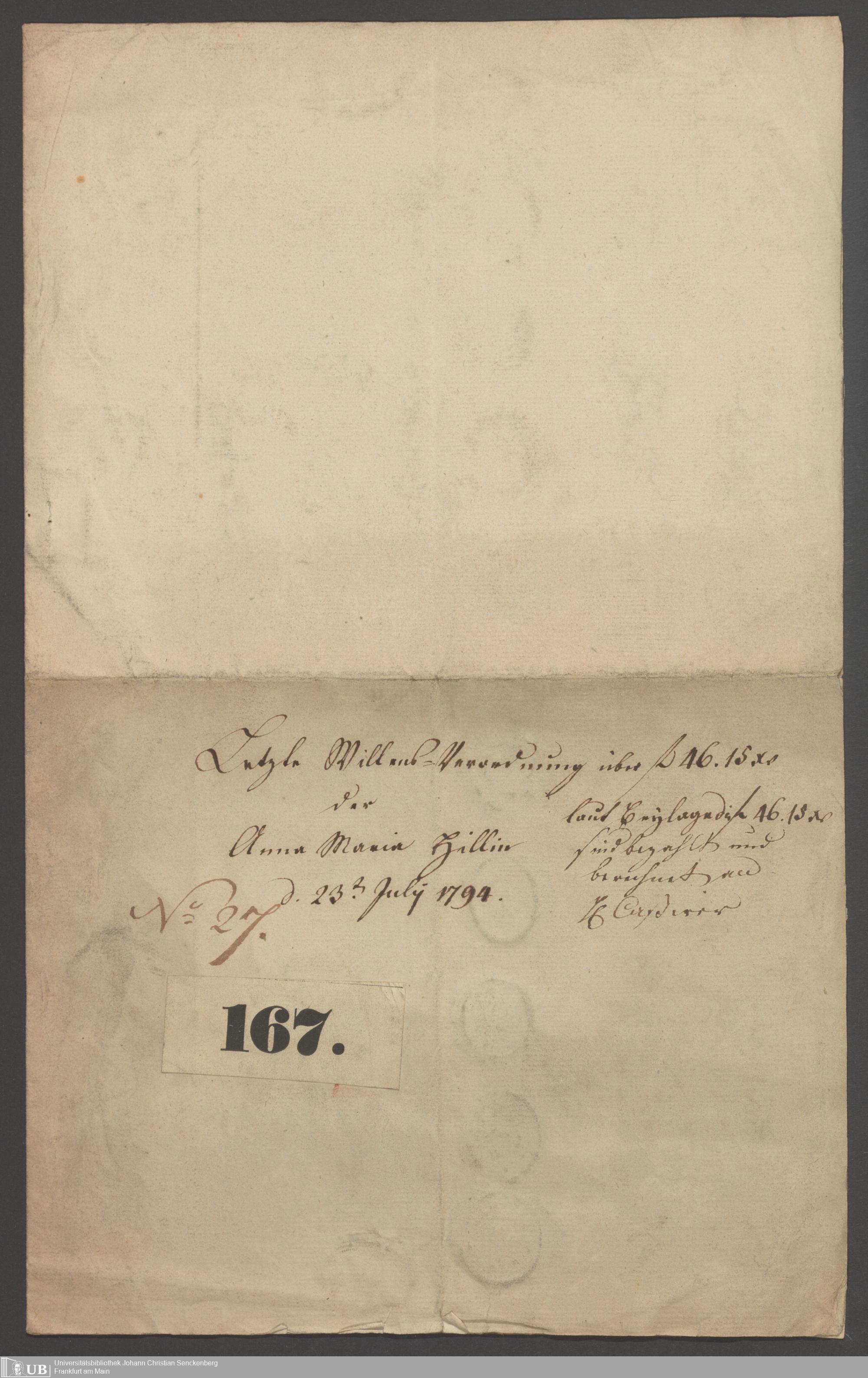 B 5 Dr. Senckenbergische Stiftung, 127 - Testament Anna Maria Hillin