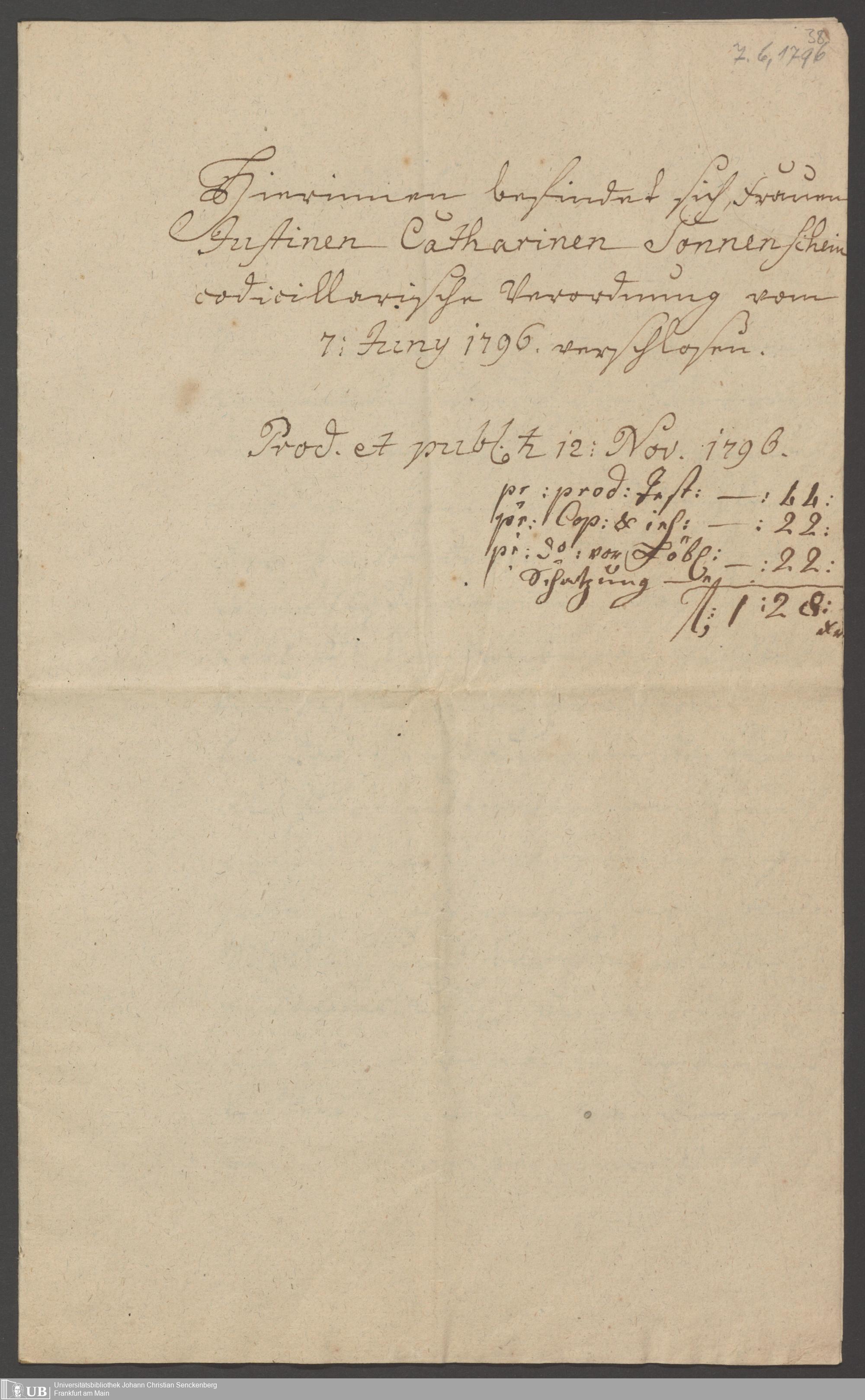 B 5 Dr. Senckenbergische Stiftung, 128 - Erbschaft Justina Katharina Sonnenschein