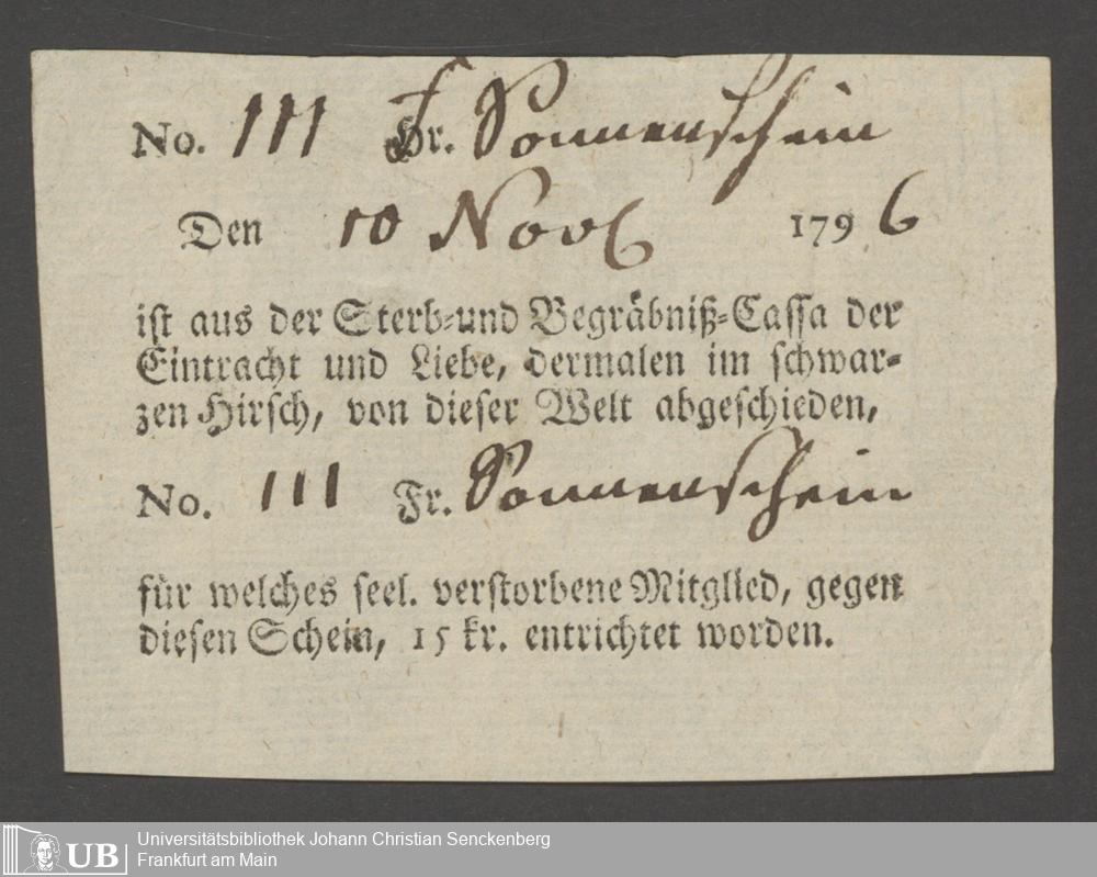 B 5 Dr. Senckenbergische Stiftung, 128 - Erbschaft Justina Katharina Sonnenschein