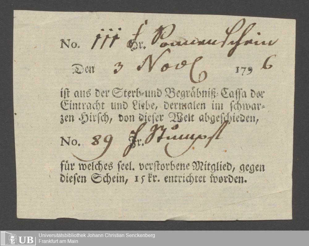 B 5 Dr. Senckenbergische Stiftung, 128 - Erbschaft Justina Katharina Sonnenschein