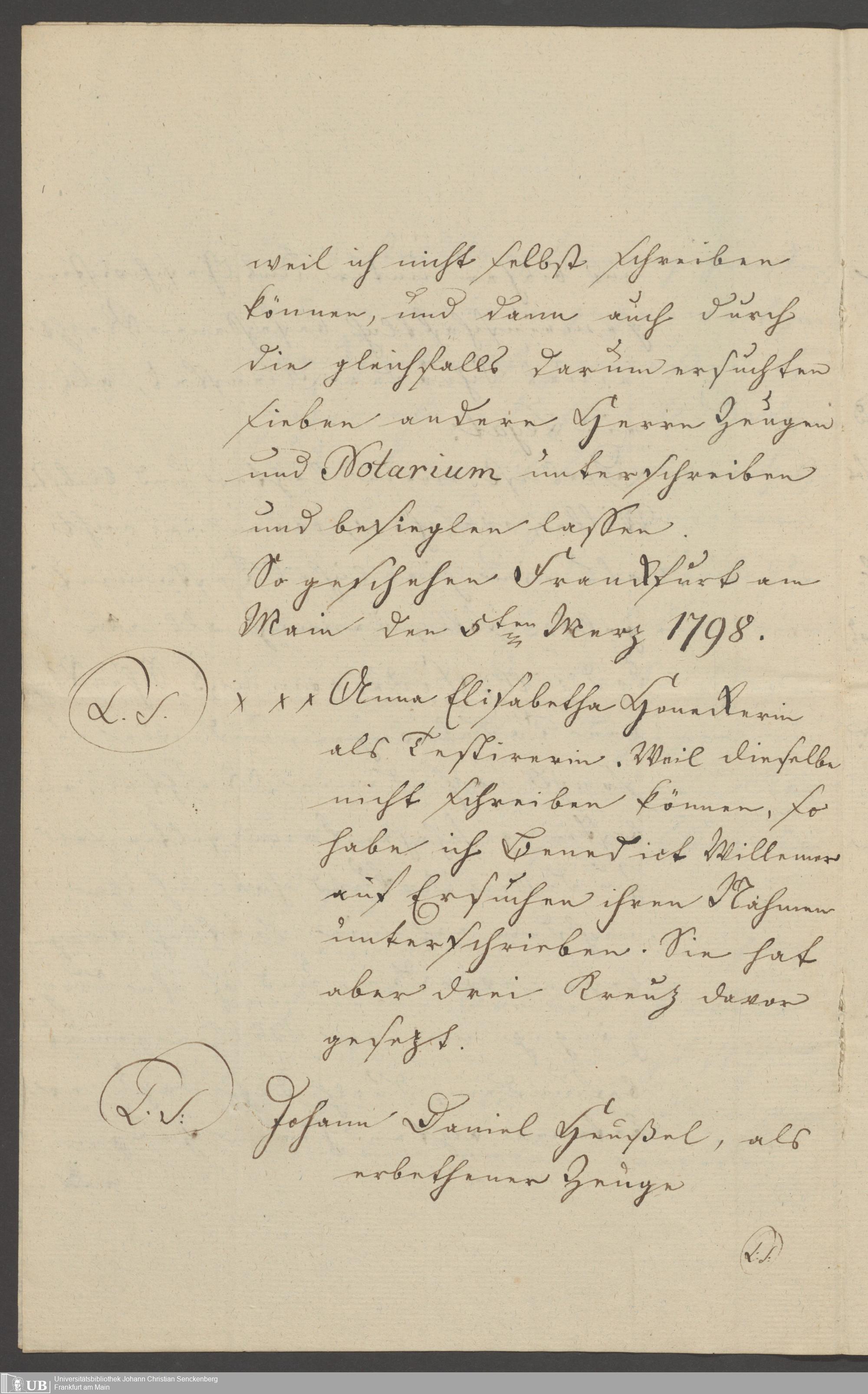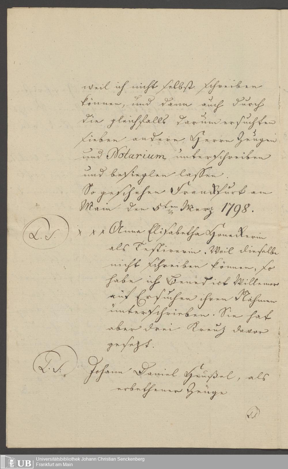 B 5 Dr. Senckenbergische Stiftung, 129 - Testament Anna Elisabeth Honneckerin