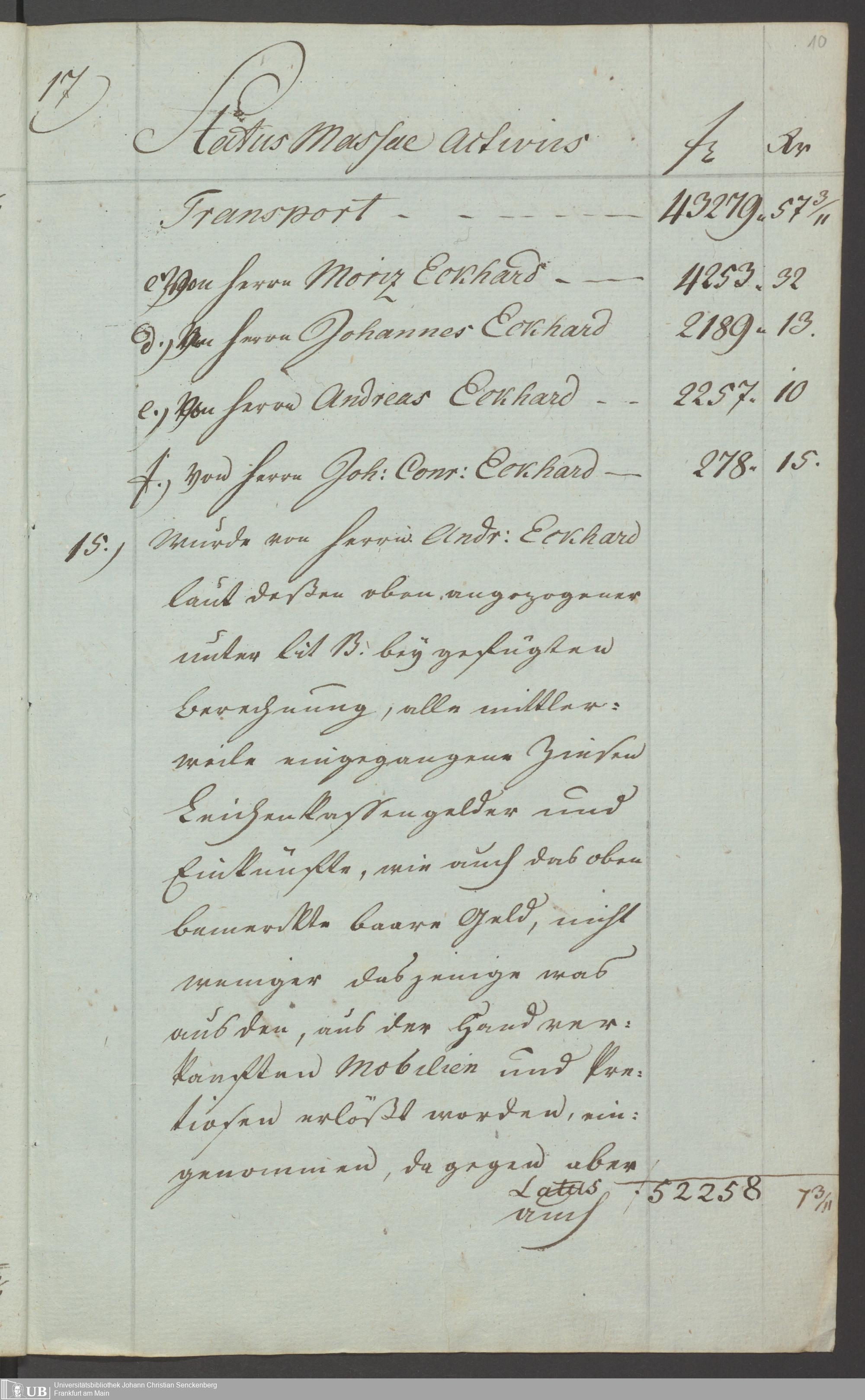 B 5 Dr. Senckenbergische Stiftung, 130 - Teilungsrezess der Kinder des Jakob Eckard und Frau, geb. Klenck