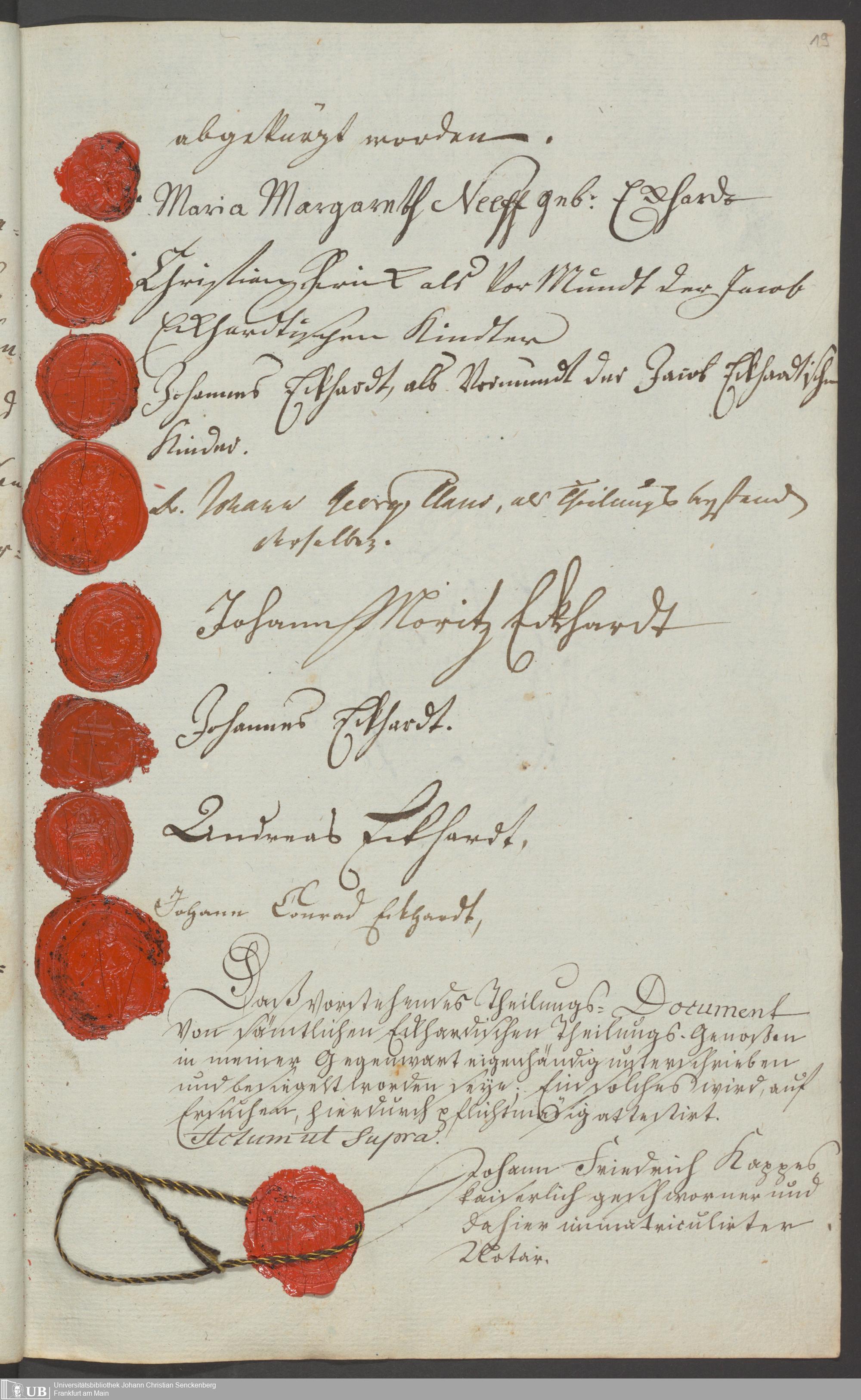 B 5 Dr. Senckenbergische Stiftung, 130 - Teilungsrezess der Kinder des Jakob Eckard und Frau, geb. Klenck