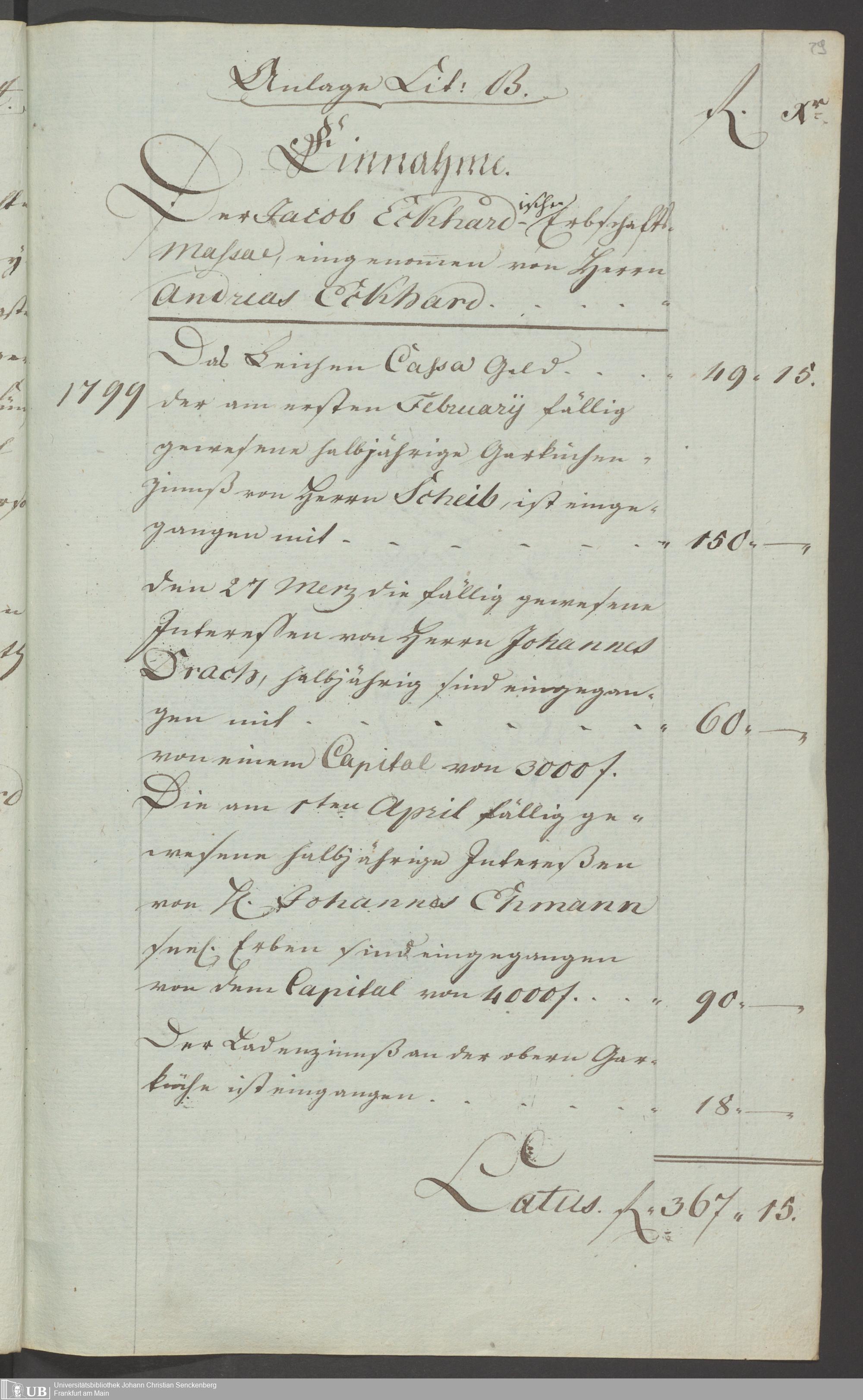 B 5 Dr. Senckenbergische Stiftung, 130 - Teilungsrezess der Kinder des Jakob Eckard und Frau, geb. Klenck