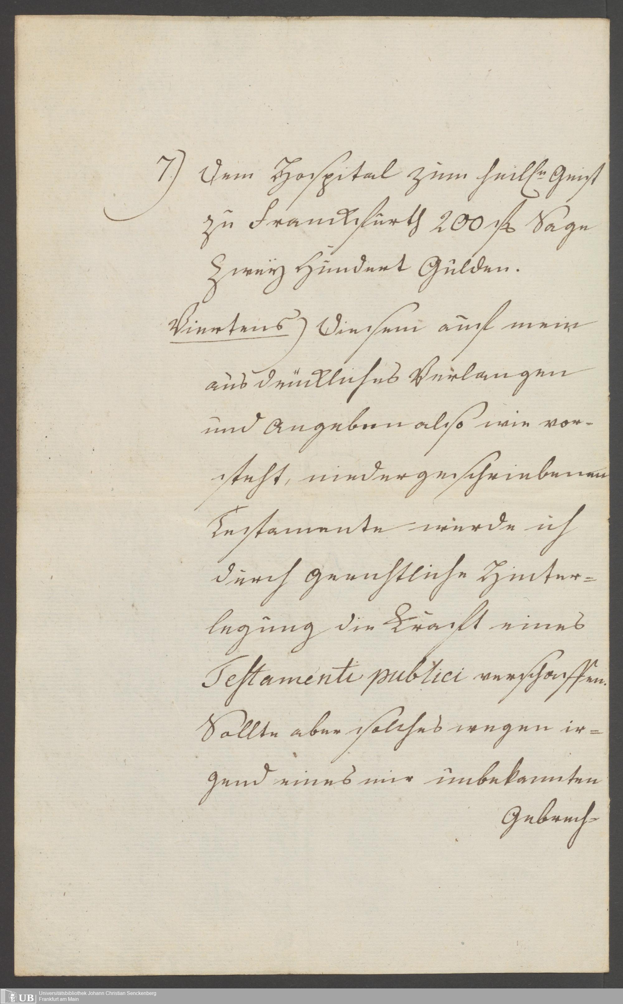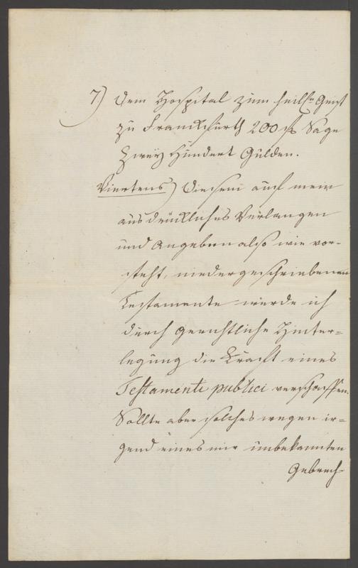 B 5 Dr. Senckenbergische Stiftung, 132 - Testament und Legat Hahn
