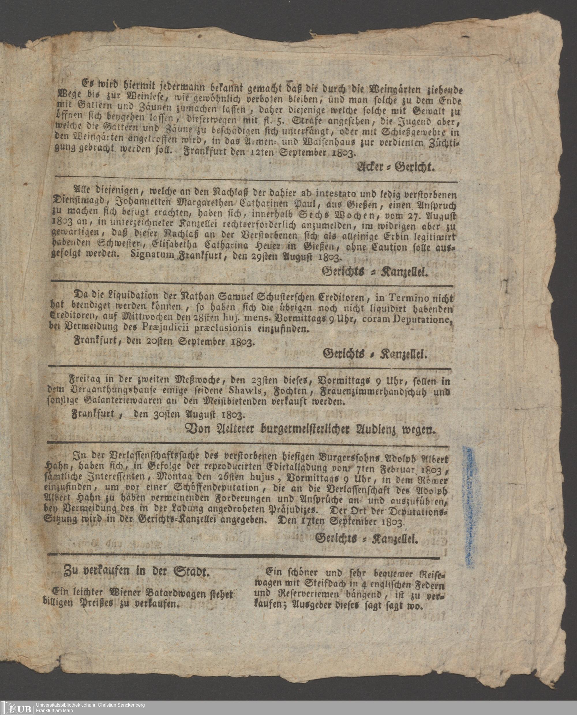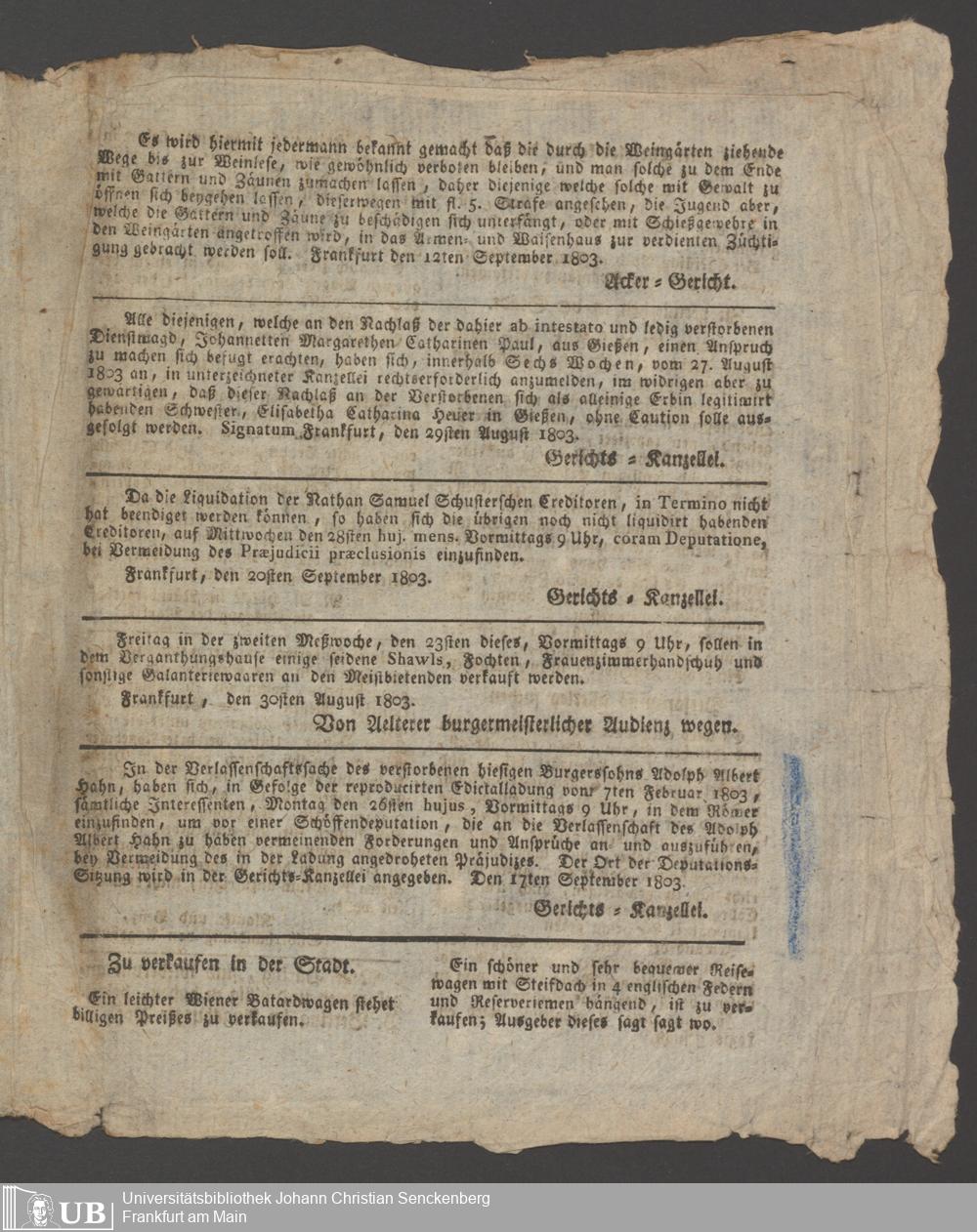 Nachlass Johann Christian Ehrmann