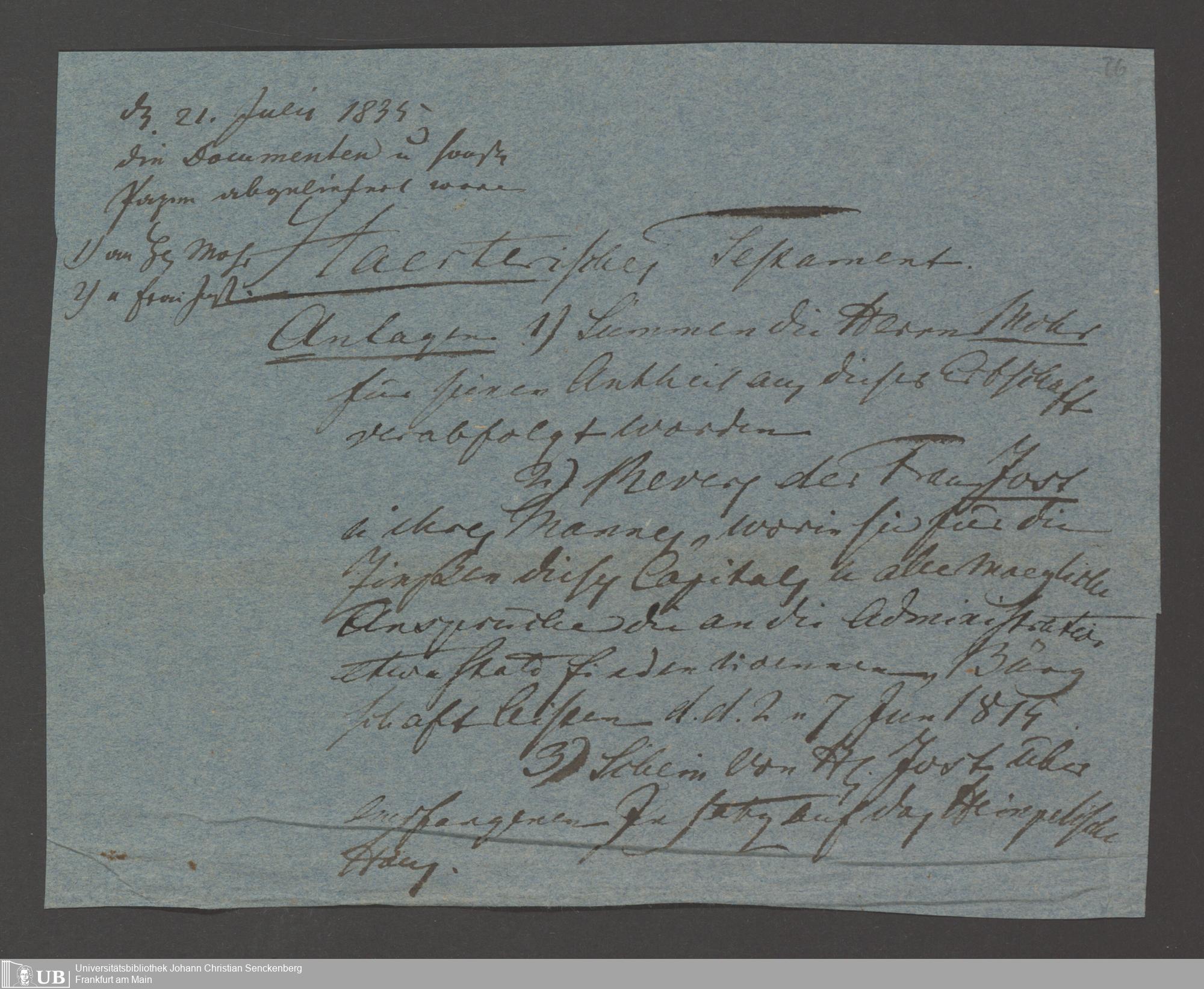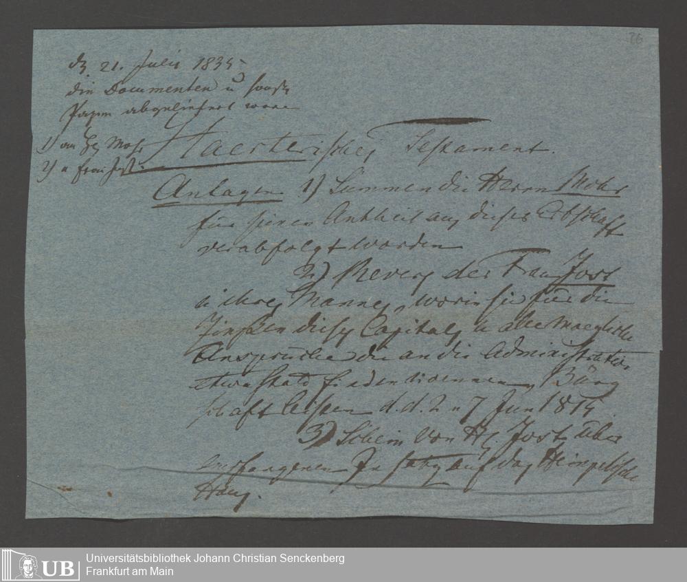 B 5 Dr. Senckenbergische Stiftung, 133 - Testament Härter