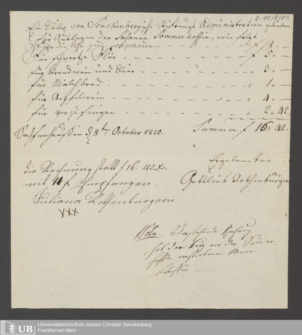 B 5 Dr. Senckenbergische Stiftung, 134 - Testament Susanna Sommerhof