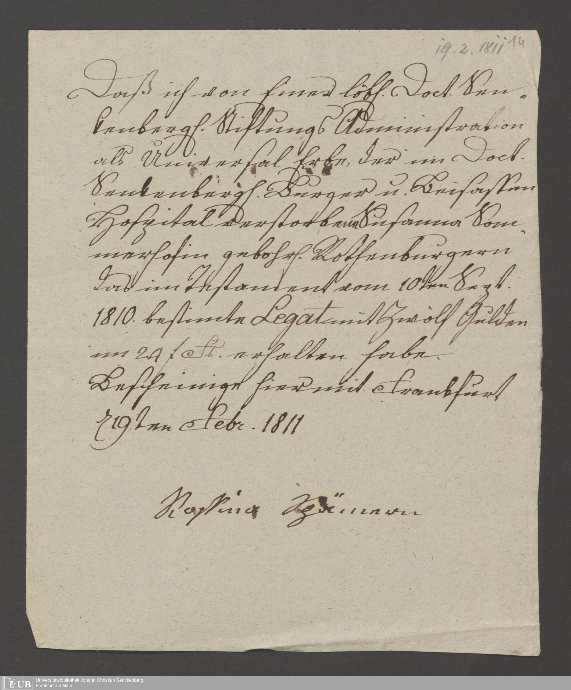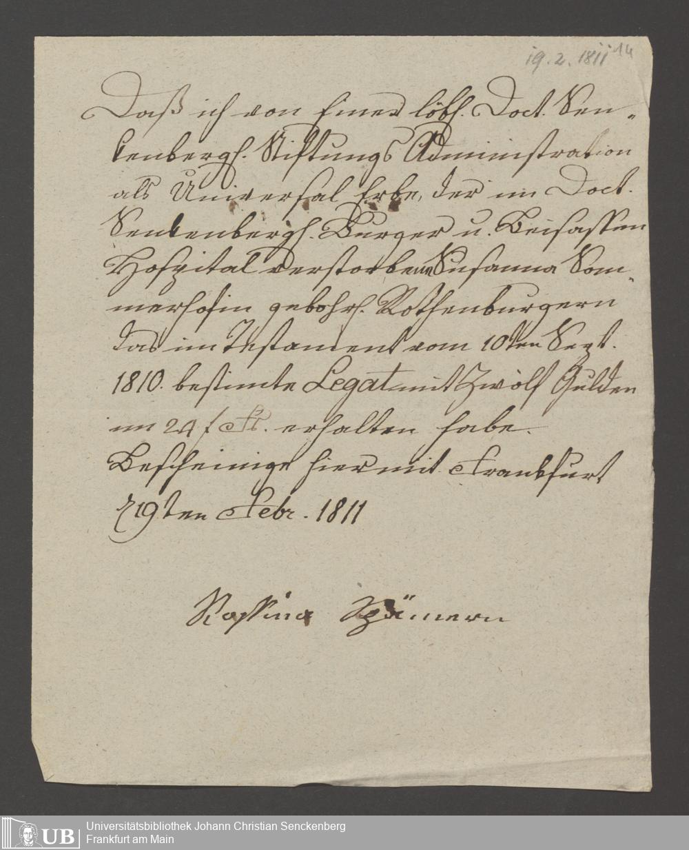 B 5 Dr. Senckenbergische Stiftung, 134 - Testament Susanna Sommerhof